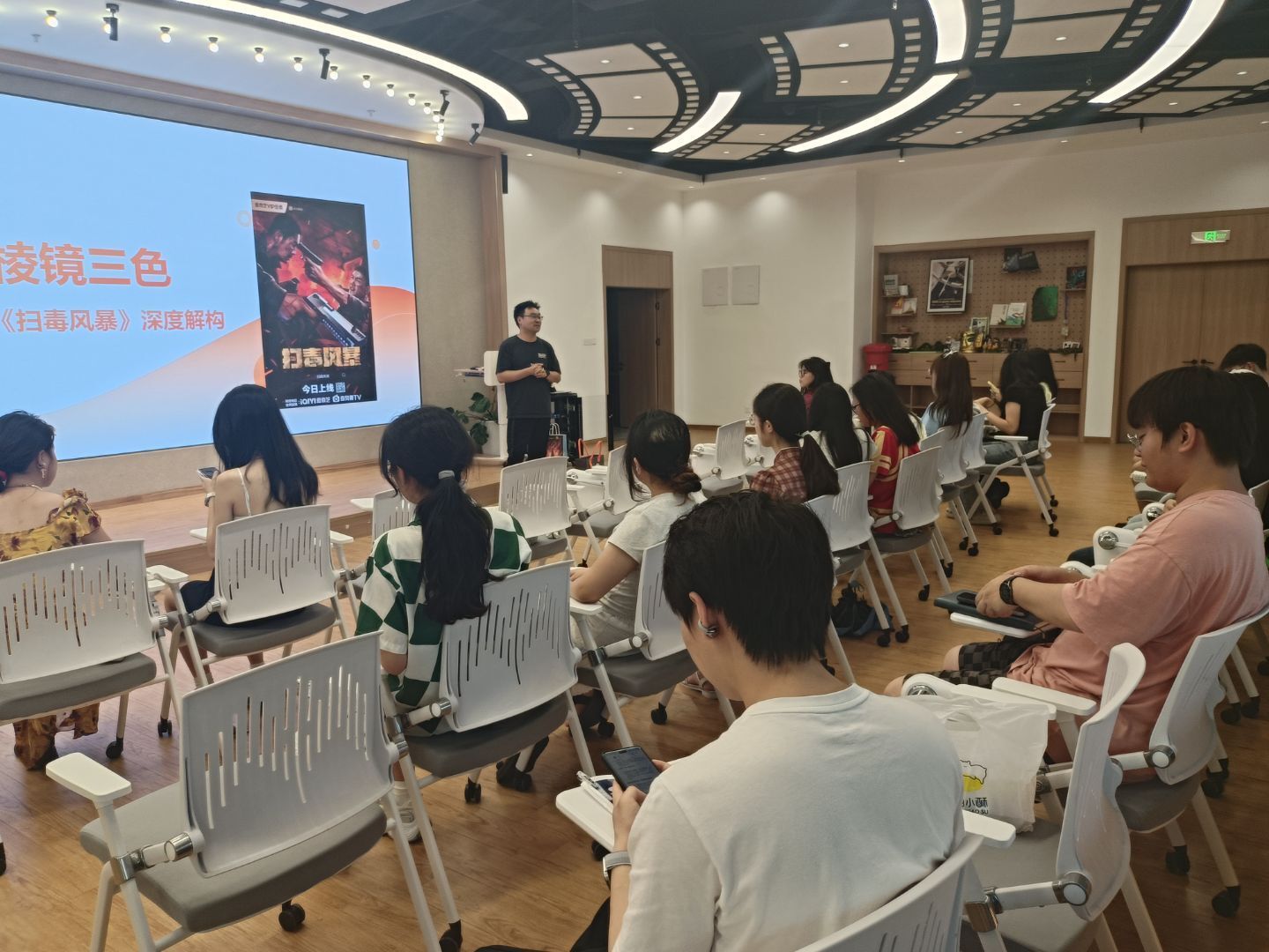 作为戏剧工坊“创作-实践-反思”教学体系的重要环节,本次授课聚焦网络电影《扫毒风暴》,由影片署名编剧、戏剧工坊导师杨文浩联合电影评论中心教师、影评人幸李寒,电影评论中心教师、导演王文龙,为作家班学生带来了一场贯穿电影全产业链的“三师盛宴”。这场融合剧本创作、导演实践与影评分析的深度对话,不仅解构了电影制作的产业逻辑,更将戏剧工坊“产教融合、实战练兵”的教学理念落到了实处。