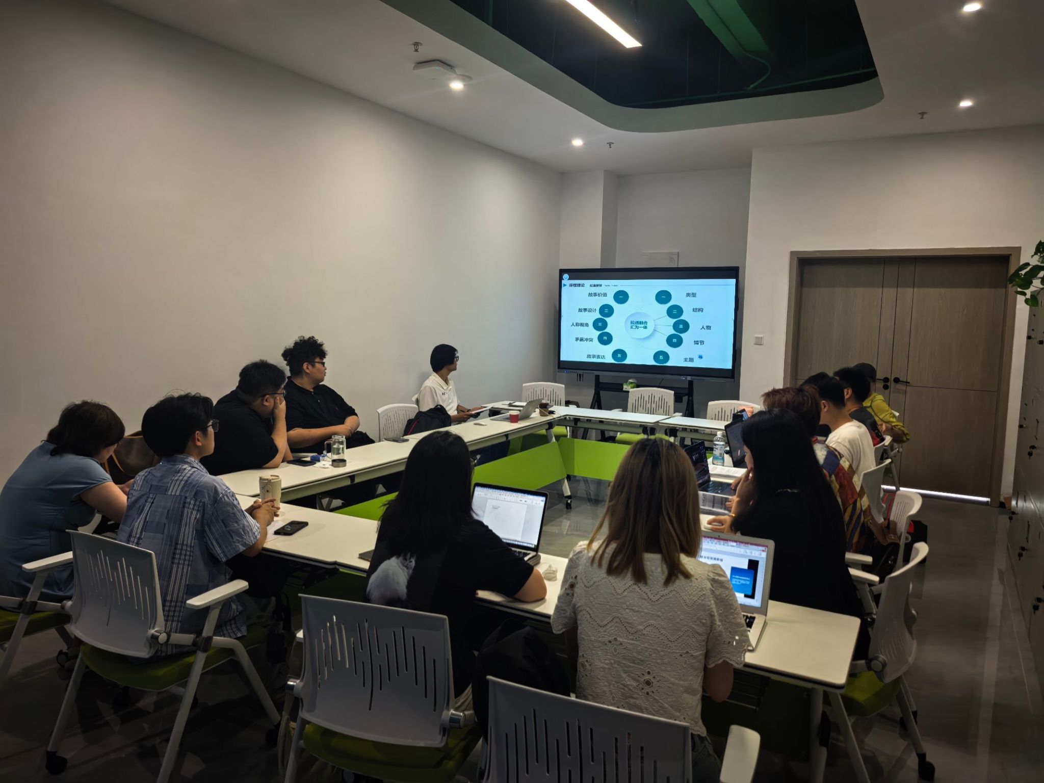 在故事写作课程研讨中,刘卫东博士肯定了“双师教学+工坊制小班”模式的创新性,同时提出了学情分层机制、五步锻造法细化、长效创作激励等优化建议。他强调可以在入学阶段通过10分钟速写测试,将学生分为“叙事基础组”与“创意表达组”,同时将“发现-设计-表达”三步骤扩展为“素材矿脉挖掘(田野调查)-故事骨架3D建模(情节思维导图)-角色灵魂注入(心理侧写)-叙事血管搭建(视角转换)-语言肌理打磨(风格实验室)”五步体系;收集学生未完成的创意片段,每学期评选优质项目配备导师进行孵化,解决“坚持写作仅两三人”的学情痛点。