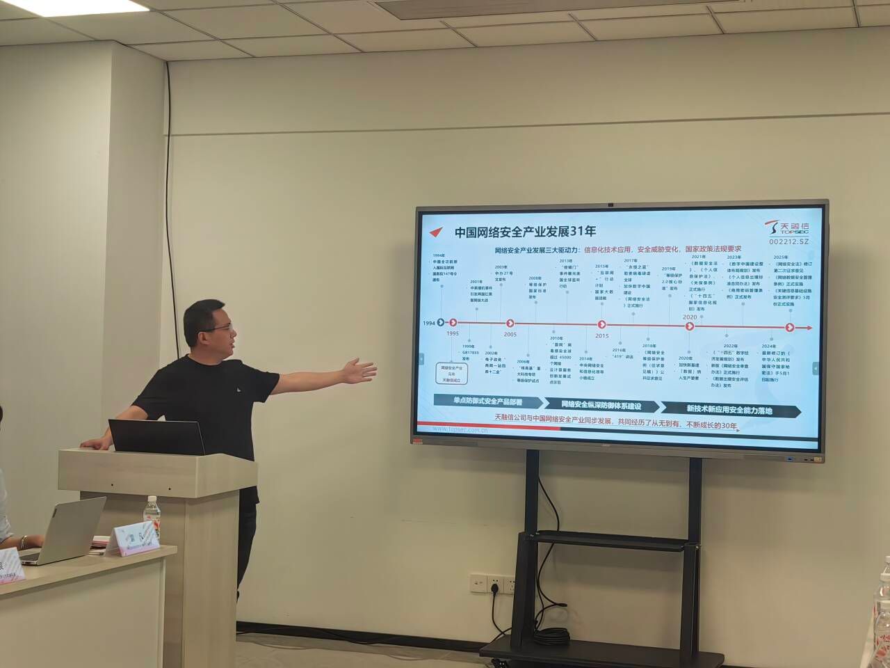 天融信教育重庆分公司刘凡总经理对移通学院一行表示热烈欢迎,介绍了集团作为国内首家网络安全企业的发展历程及天融信教育在人才培养方面的成果。