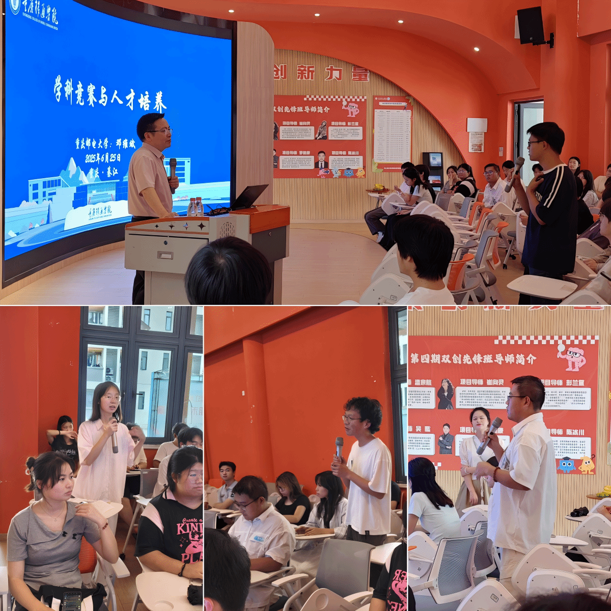 首先,綦江校区实验教学管理中心向春红老师主持了“学科竞赛与人才培养”学生座谈会。与会学生围绕自身竞争力提升、高回报竞赛选择、考研专业选取及读研期间收入来源等问题踊跃提问。邓维斌教授结合重庆邮电大学优秀毕业生案例,就如何强化专业能力、甄选高含金量赛事进行了指导,并针对考研流程(含初试复试)以及读研期间奖学金体系等学生关切点,提供了详实的解答与经验分享。
