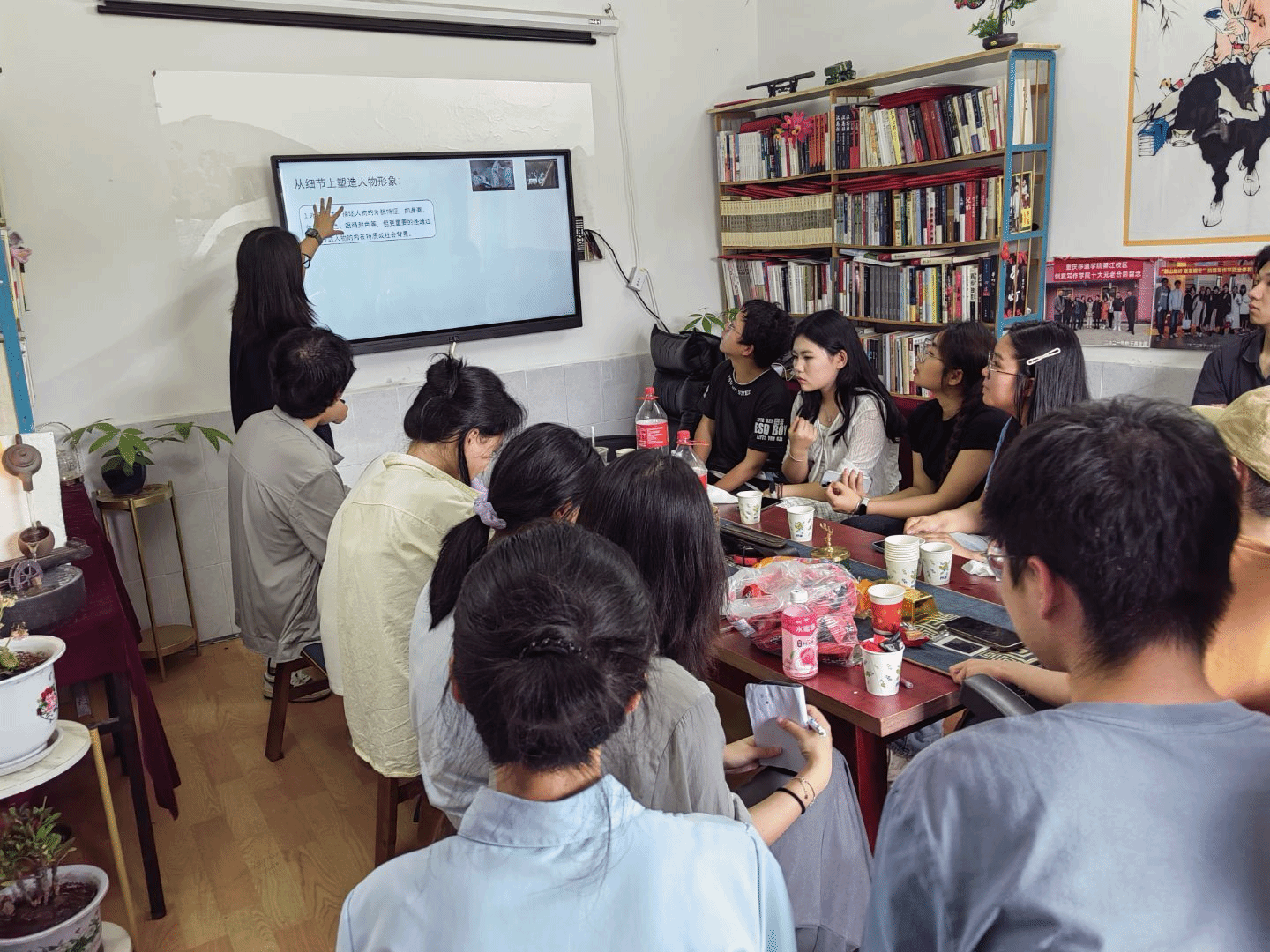 在四个小组同学声情并茂的剧场演绎后,紧接着开启了学生作品原创小说研讨环节。本次课程研讨陈泠同学的原创作品《转身,流浪》,由苏瓷瓷老师带领各小组同学展开讨论。在一番激烈的讨论过后,小组学生代表对该作品发表了各自的看法。其中,杨宇辉同学认为文章前部分写“狗”的篇幅过长,导致与后面“收养”的情节不能完美衔接,且在结尾中关于“狗决定继续流浪”这一动机阐释不明。而牟柏霖同学提到,无论是老人还是狗——来福都是渴望去流浪的,文中老人躲在厕所抽烟,不想被孙女发现,其实蕴藏了对自由的渴望。