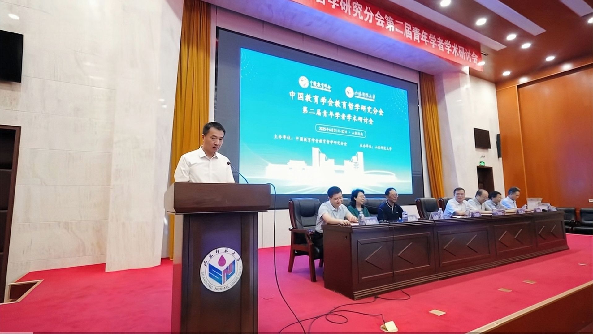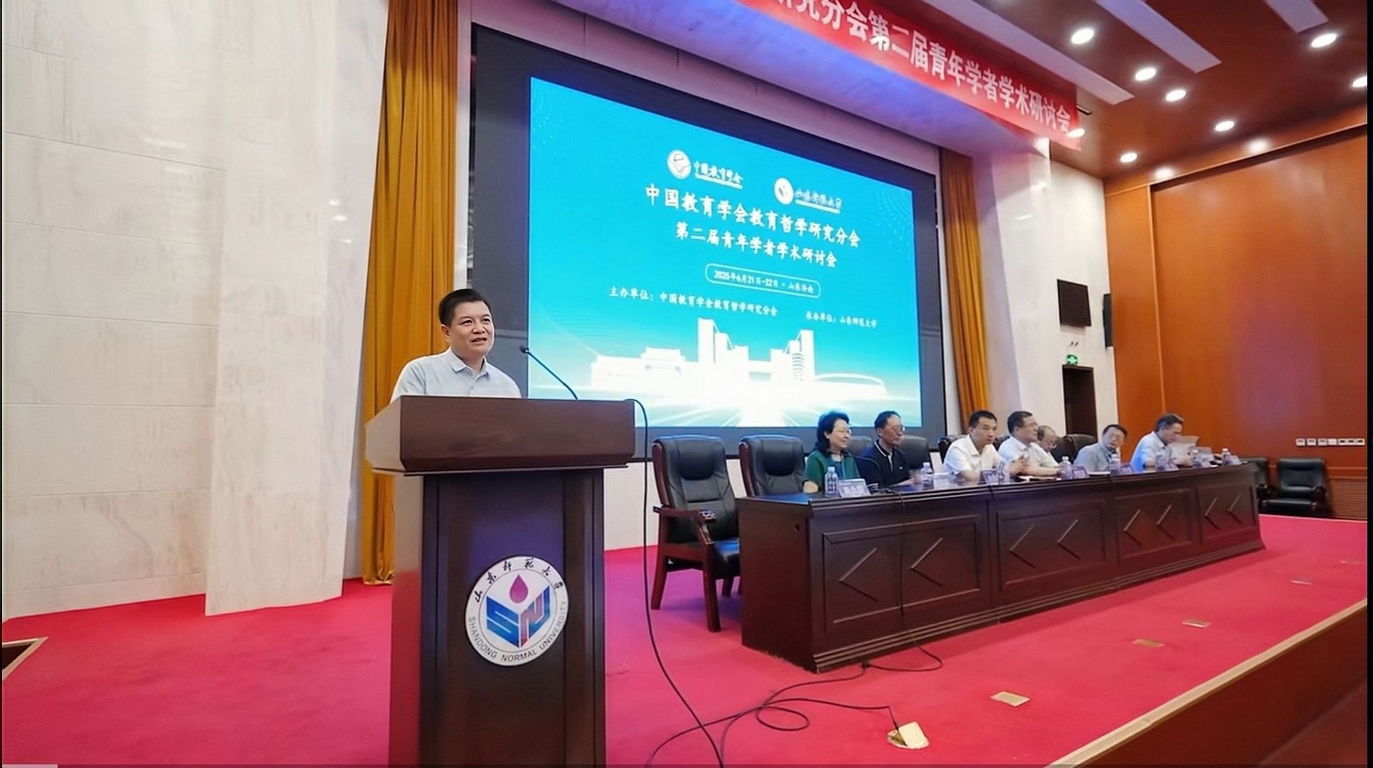 会长石中英教授、山东师范大学党委副书记许双庆教授、山东师范大学教育学部部长徐继存教授先后致辞,强调教育哲学研究需立足中国实践,构建自主知识体系,为教育强国建设提供理论支撑。开幕式后,全体参会人员于文化楼前合影,定格学术交流启幕时刻。
