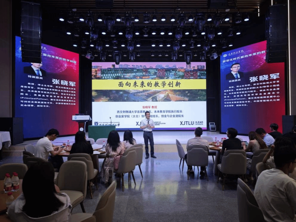 西交利物浦大学首席教育官张晓军教授以《数字化时代面向共享未来的教学创新》为题,探讨了人工智能对教育的影响,涵盖教育底层逻辑、未来教育趋势及教师转型等内容,为教育从业者带来了全新的视角和思考。他提出重构“以学生为中心”的教育模式,强调以社会挑战驱动学习,贯穿终身成长路径,聚焦个体独特塑造,实现智能技术与教育的深度融合,以及转向探索研究驱动的教学方式。这些方向不仅回应了数字化时代的需求,也验证了学校培养“完整的人”教学理念前瞻性。