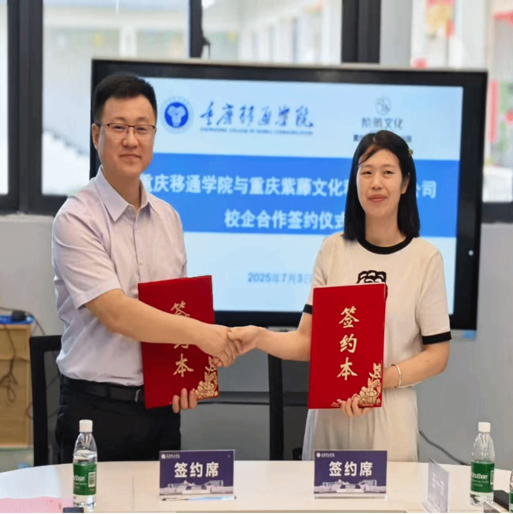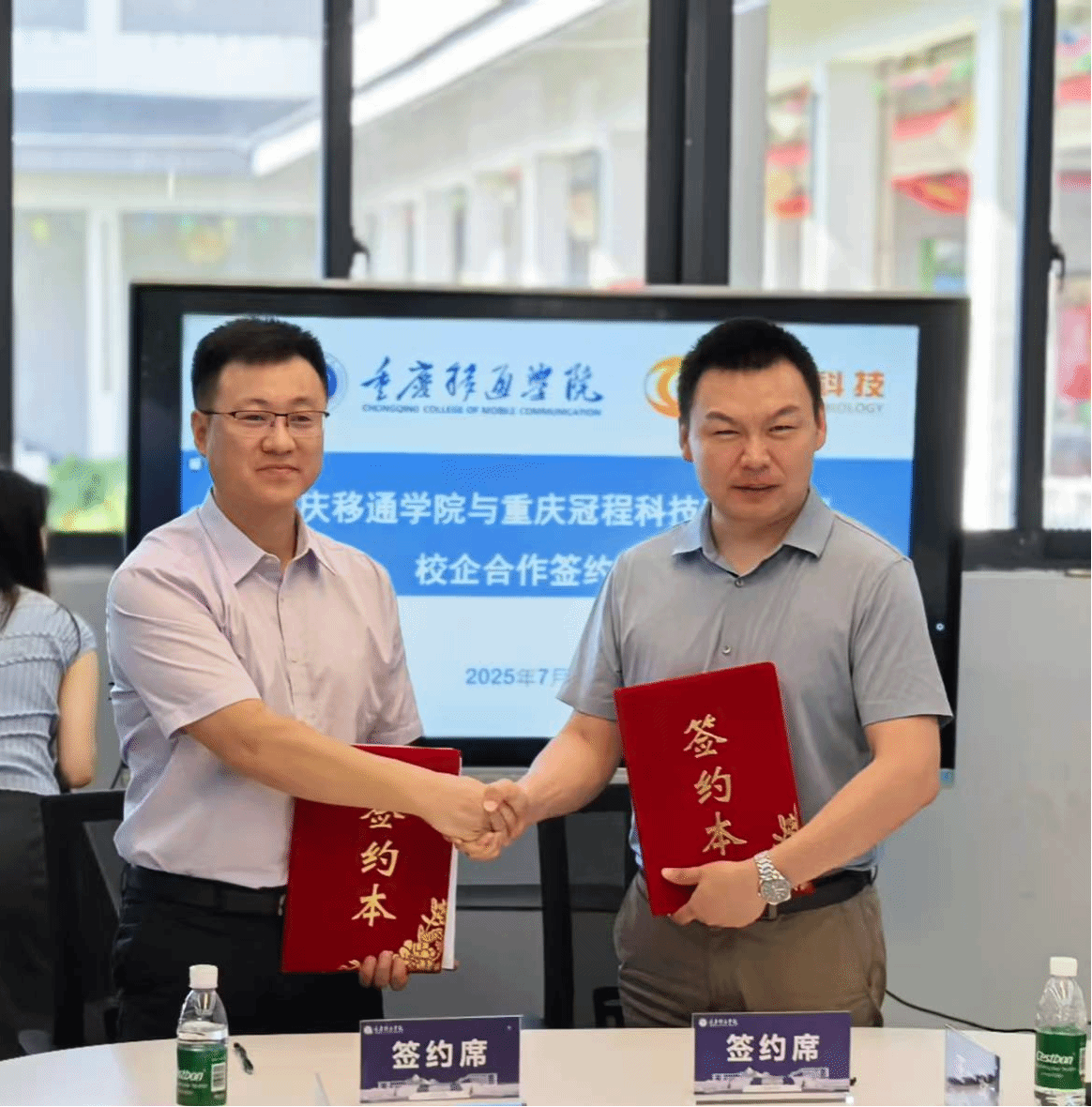 9时30分,签约环节正式开始。重庆移通学院校领导分别与冠城科技、紫藤文化科技代表签署《校企合作协议》,双方交换文本并握手合影,标志着合作进入实质性推进阶段。
