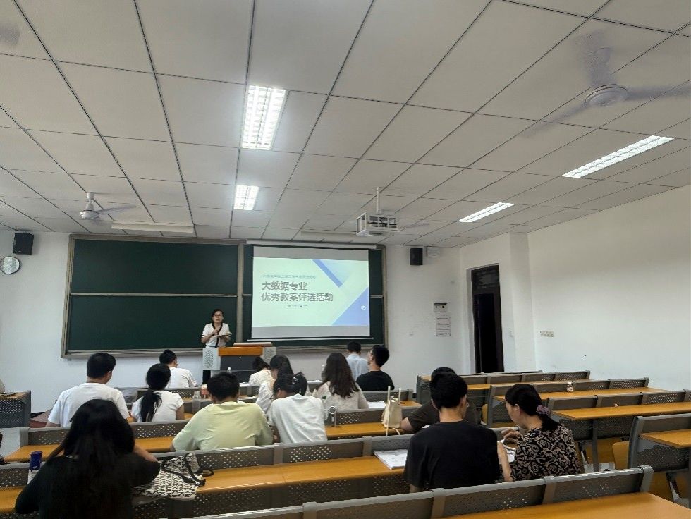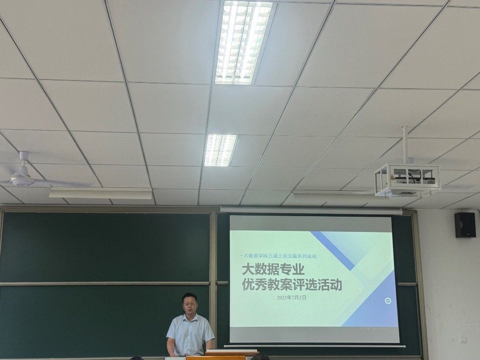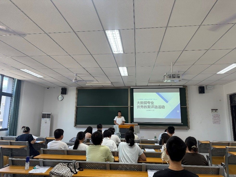 为落实学校“三提三创”主题年系列活动,强化教学标准化建设,进一步提高大数据专业教师的教学水平和创新能力,促进教学方法的改革与发展,7月2日下午在勤者楼410举行了一场别开生面的优秀教案评选活动。本次活动由大数据教研室主任李静毅老师主持,数据科学与大数据技术专业的所有任课教师参加,并有幸邀请了大数据学院院长潘显兵进行指导,大数据学院教学副院长吕云山、重点实验室邓秋菊、数媒教研室主任蔡宇作为本次活动的评委。