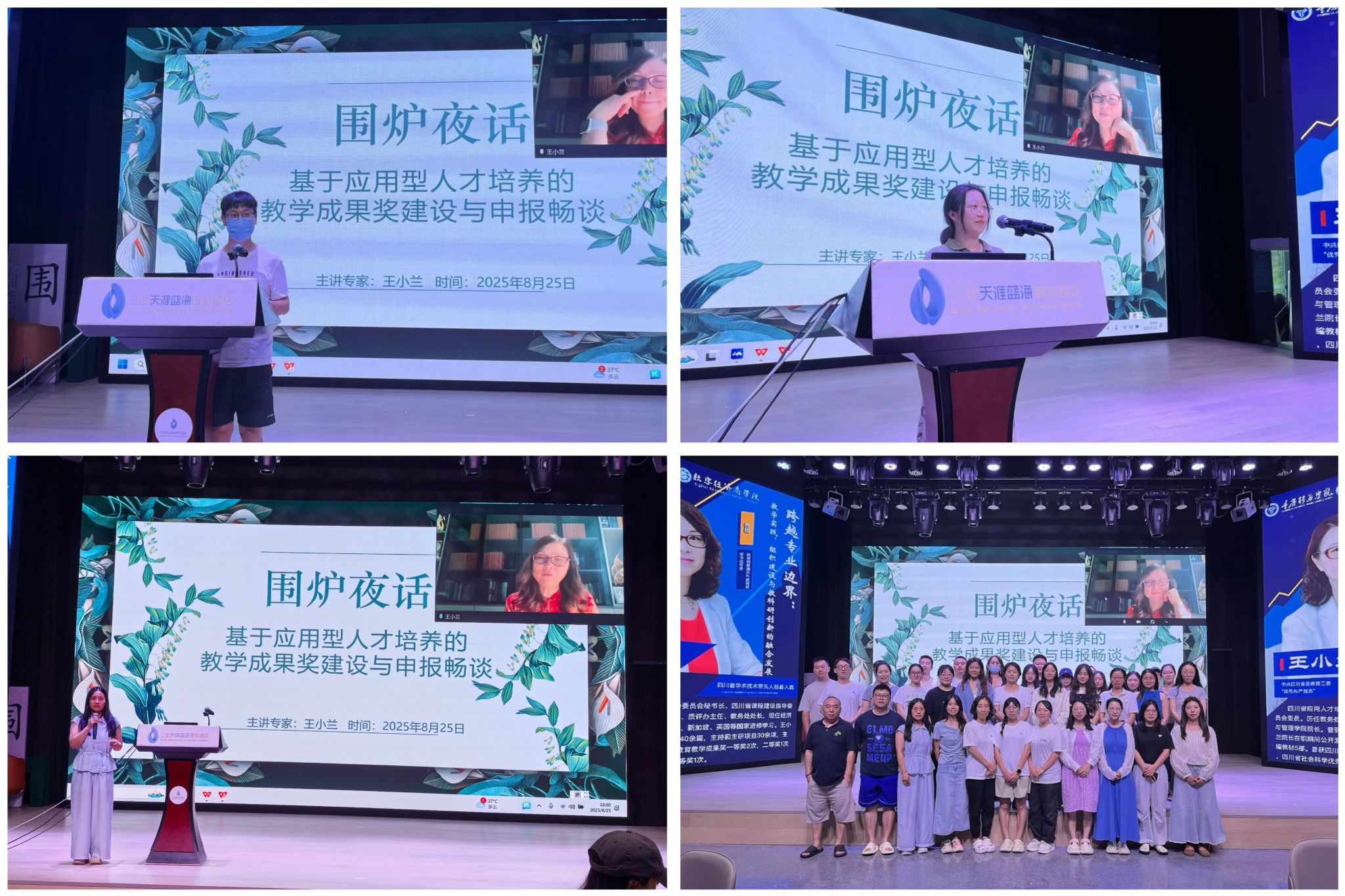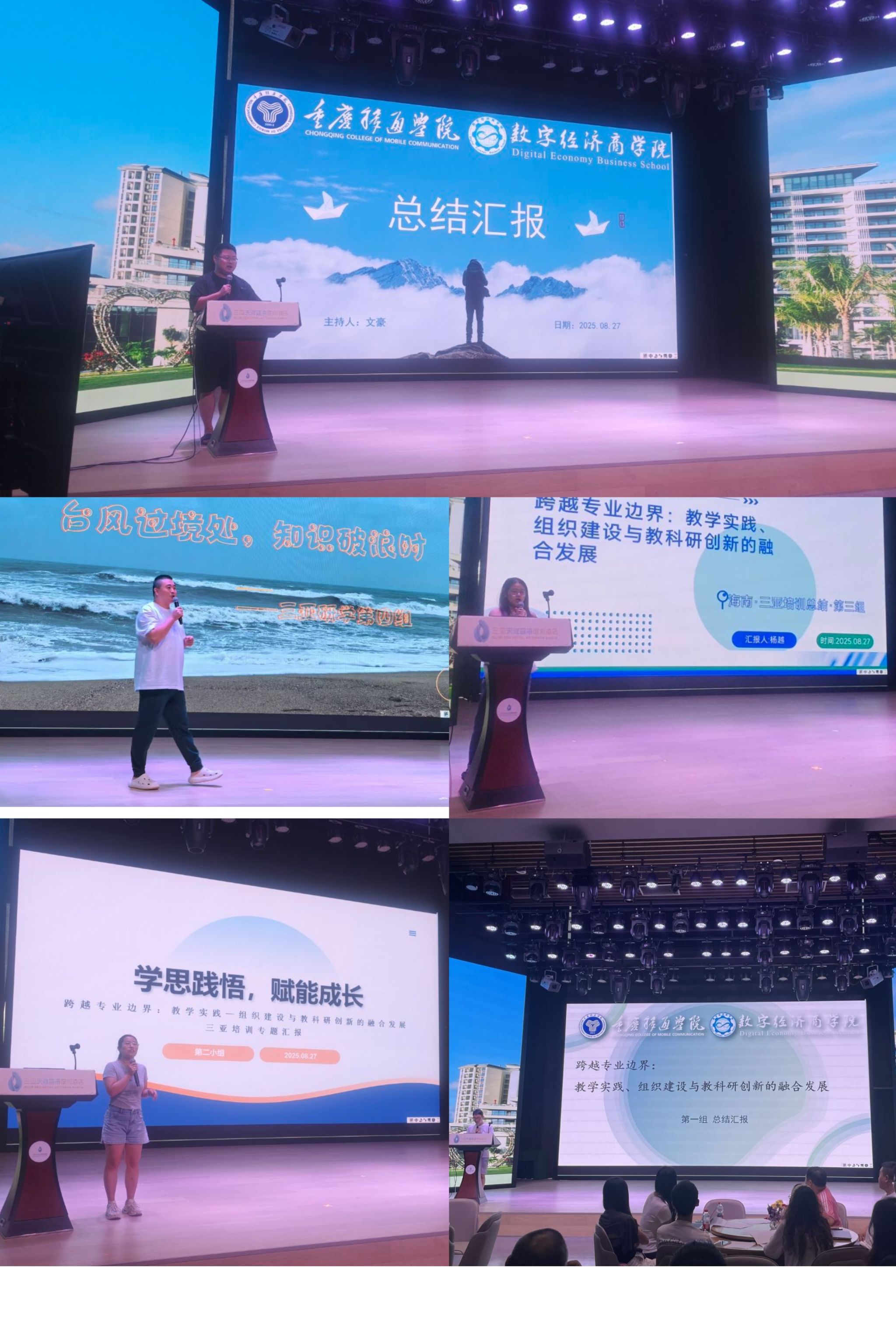8月27日,聚焦跨界融合的三亚培训在深度交流中圆满落幕。四个小组结合培训所学,围绕“跨越专业边界:教学实践、组织建设与教科研创新的融合发展”主题展开成果汇报,从跨专业教学方案设计、教学组织优化,到教科研项目孵化、“教践-组织-研创”协同机制构建,多维度分享与案例剖析,勾勒出教育教学跨界融合新蓝图。