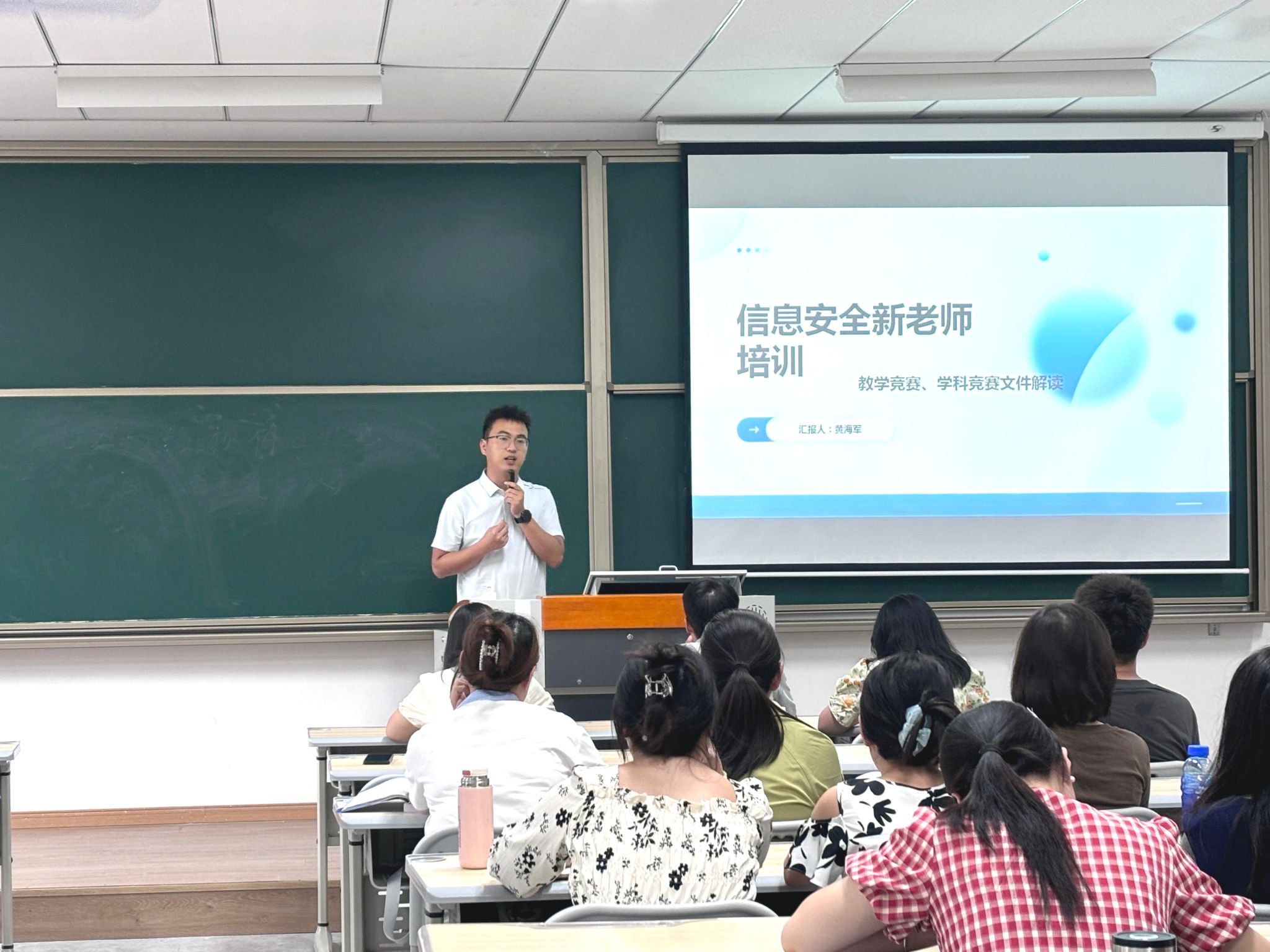 聚焦合格评估,提升教学质量。信息安全学院于2025年8月31日在贤者楼313开展了2025-2026学年第一学期新教师开学培训。本次培训由信息安全学院代理教学副院长周小艳主持,信息安全学院各教研室主任、教学秘书汪畅老师和新入职的新教师参加。