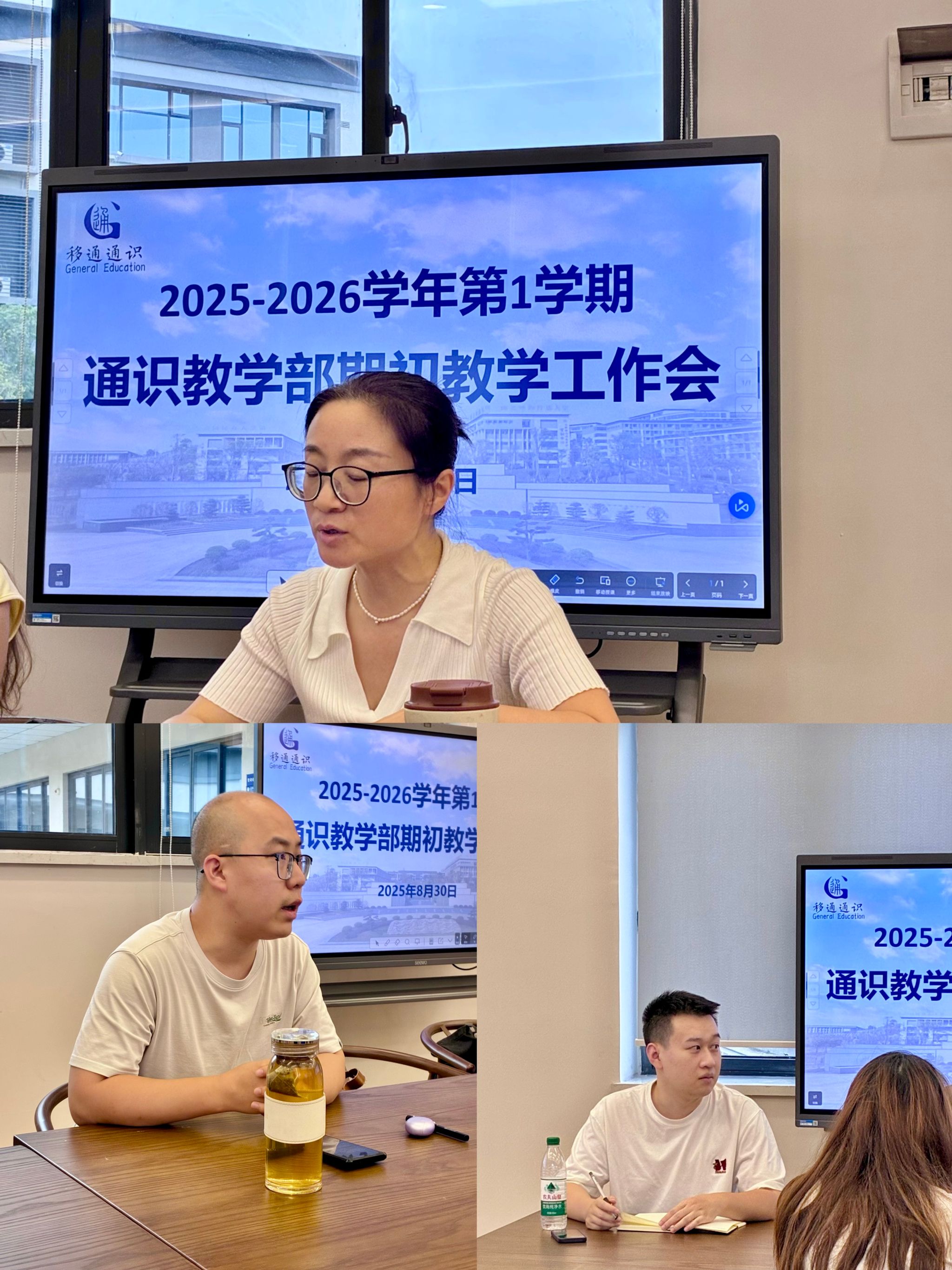 2025年8月30日下午,通识教学部全体教师在智者楼402教室召开期初教学工作会,通识教学部副主任张艳主持。本次会议聚焦新学期注意事项的明确,并对新学年部门工作重心进行规划部署。