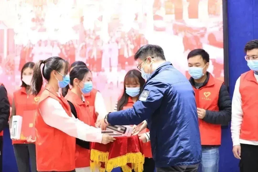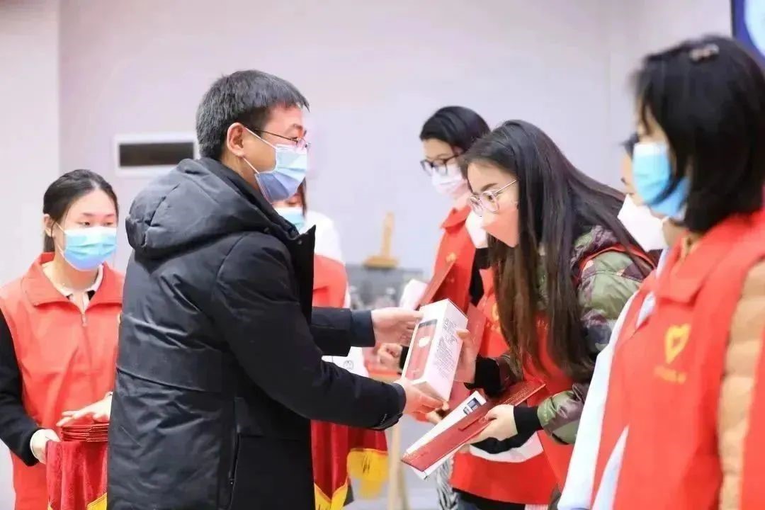 校领导王永周、孙玺、李文豹、张雪占分别向教师志愿者代表们颁发证书与纪念品。
