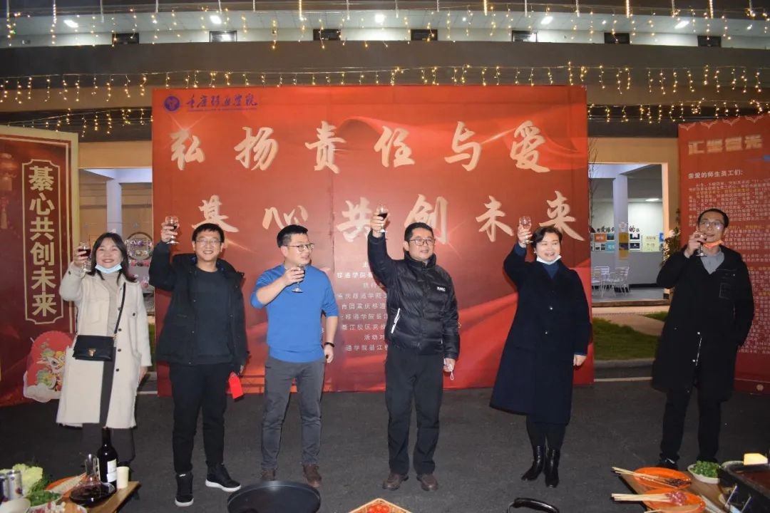 12月14日下午16:00,重庆移通学院綦江校区联合工会、校团委、书院部、竞技体育中心、营地教育中心,在綦河书院特开展“弘扬责任与爱·綦心共创未来”主题系列活动,綦江校区教职工们携手共赴这场浪漫“盛宴”。