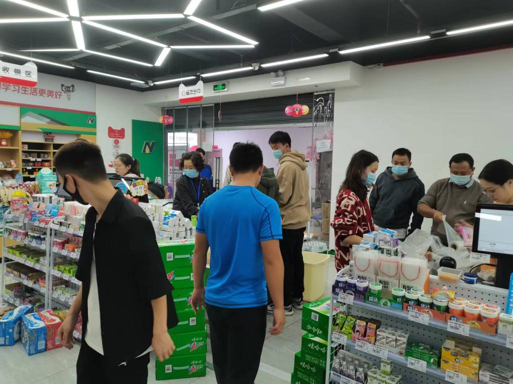 后勤保障组组织了一支10人的队伍,他们白天为了同学们的三餐和防疫措施奔波,晚上开会复盘防疫措施、四处奔走为同学们购买紧缺物资,从清晨到日暮,从夜色渐浓到晨光破晓,他们夜以继日,始终奔赴在构筑学生健康安全防线的一线。疫情来临,他们是学校的重要保障。