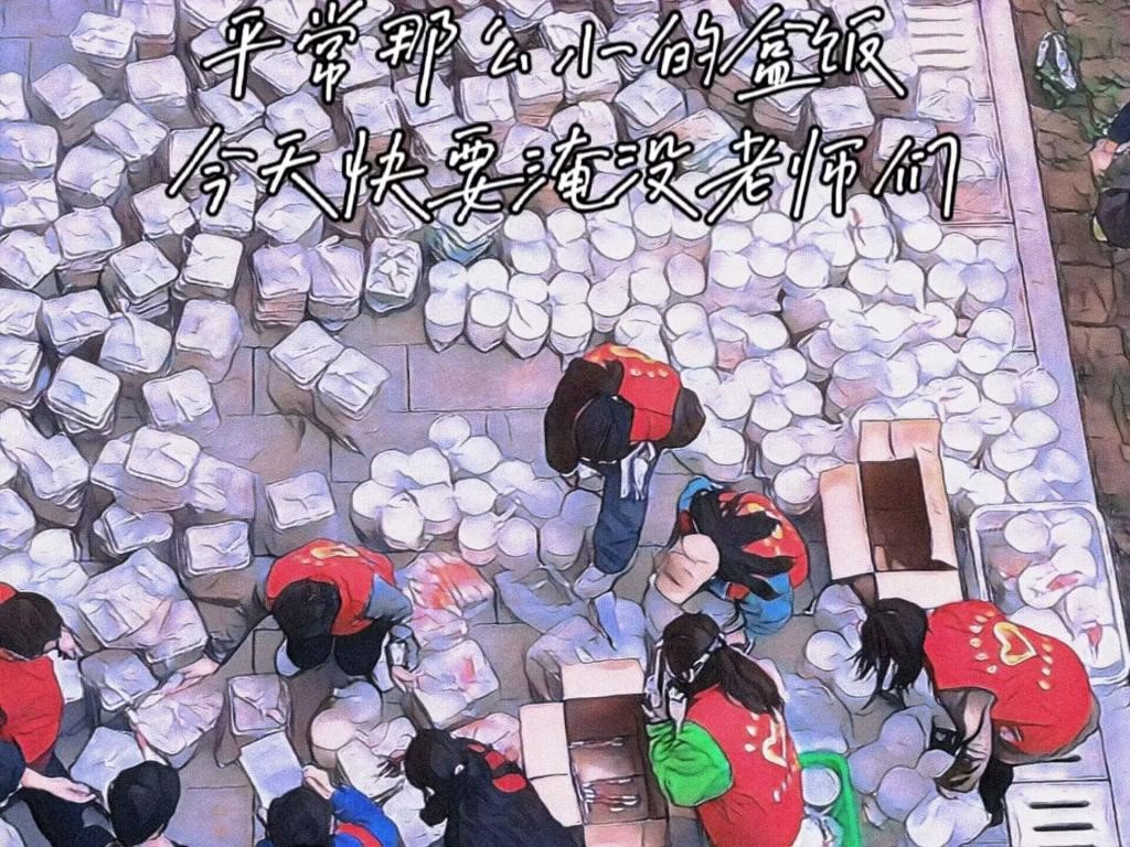 志愿者教师还没坐下歇口气,又继续为同学们准备午饭,没吃上一口饭却坚定地呐喊着“优先保障学生”、“不能把孩子饿着了,老师年纪大,多一顿少一顿没的意见”……学生们也知道老师的辛苦,不仅从未抱怨过很晚才拿到餐饭,还积极主动申请加入志愿者大队,也会在阳台悄悄记录下最美志愿的背影。同时在各大网络平台上传图片和视频感谢老师,为老师加油打气!积极传播正能量,配合学校抗疫工作,营造了校区良好的温情感人氛围。