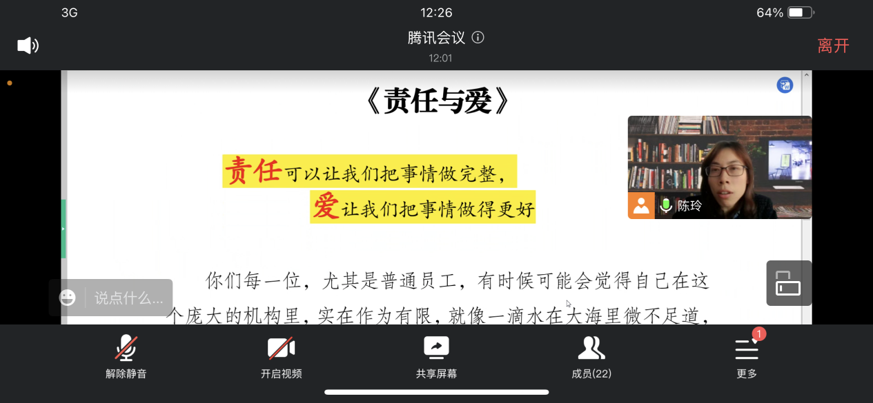 “历经沧海桑田,希望我这颗渺小沙粒依然能够纯净如初。”在学习彭总的讲话精神《责任与爱》后,各位老师深受鼓舞,踊跃发言。现节选部分发言内容,希望大家带着责任与爱共勉,一“綦”描绘移通美好蓝图!