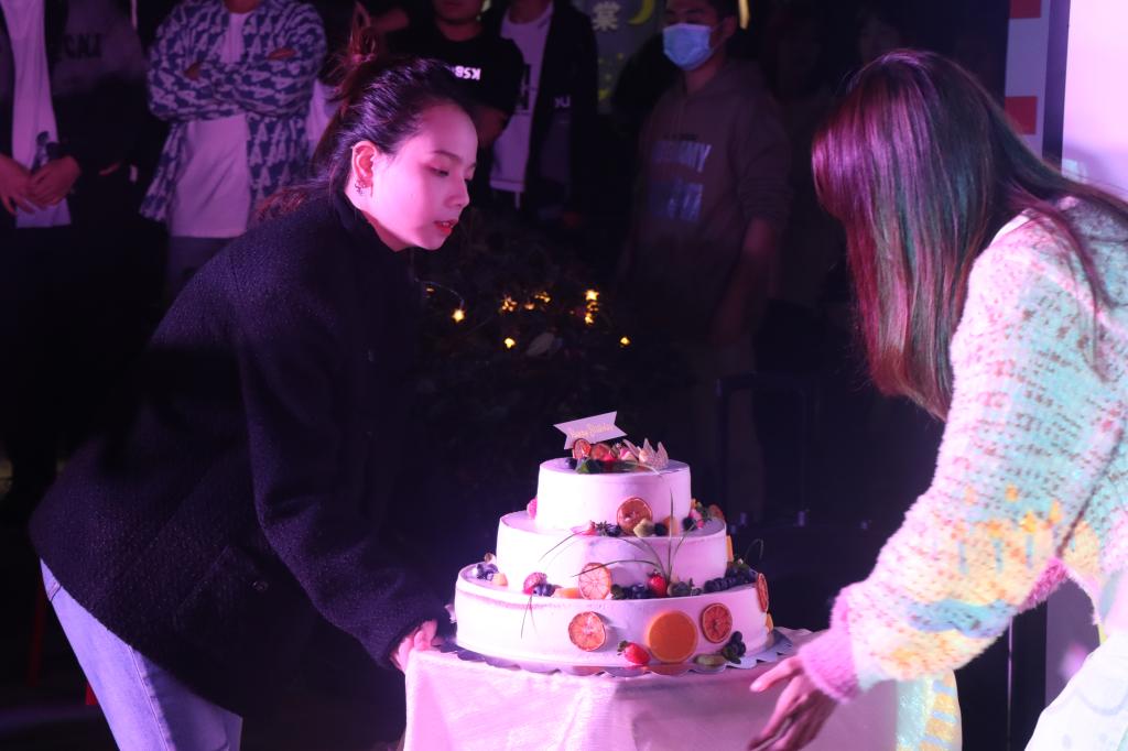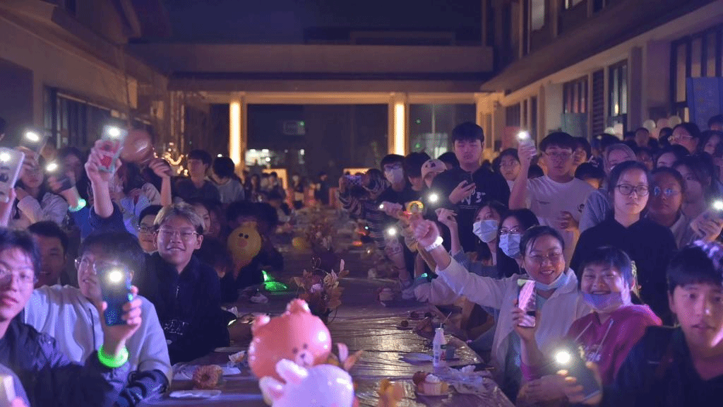 舞动的身影与欢快的歌声过后,仪式与祝福也早已等待着上“棠”。伴随着音乐的响起,寿星的专属蛋糕缓缓登场,一支蜡烛,无数期许,许下心愿,唱响祝福。在这里,已过霜降的长街因有家人的陪伴而温暖;在这里,渐进戌时的夜巷因交融而欢快,一场独属于书院学子的生日仪式感,在悦耳的歌声中、在祝福的掌声中、在真诚的相伴中不断蔓延。