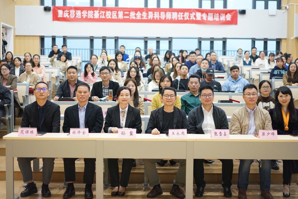为落实“立德树人”根本要求,坚持“以学生充分发展为中心”的教育理念,我校凭借四位一体双院制+特色教育的独特育人路径,于2021年全面推行全生异科导师制。直至今日,学校第二批全生异科导师已成功选聘,并完成了2022级新生的师生匹配。为了新一批导师尽快适应学生“知心朋友、成长伙伴、人生导师”的新角色,全生异科导师工作领导小组办公室(书院部)于10月26日下午16:00时,在玉棠书院阶梯教室(YT111室),举行了2022-2023学年綦江校区第二批全生异科导师聘任仪式暨专题培训会,我校常务副校长王永周、副校长孙玺、副校长张雪占、各学院负责人及綦江校区第二批全生异科导师参会。
