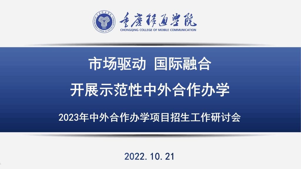 目前,我校2022年中外合作办学项目招生及报到工作顺利完成。10月21日下午,召开了2022年项目招生工作总结暨2023年中外合作办学项目招生研讨会,会场设在南湖书院圆桌会议室。新商科大学集团副总裁尹邦满、重庆移通学院常务副校长王永周、校长助理尹浩亮、张衍学以及招生处、中外合作办学项目专项组、德国工程学院招生组全体成员参加。会议由学院副院长李伟光主持。