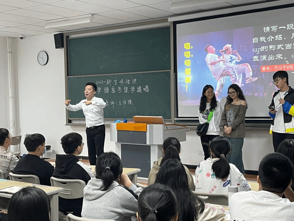 仁者楼503教室是创意写作学院教师刘明主讲的《朗诵与自信心训练》。刘老师的课程充分体现了实践性与新的教育理念相结合的特点,让大一新生感受到了大学生培养自信心,注重口语表达交际能力的重要性。