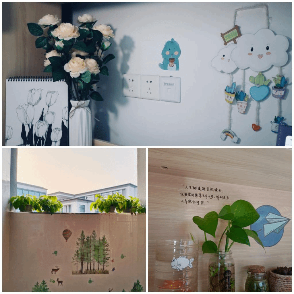 宿舍就是同学们的第二个家,只要你愿意用心去打造,这里可以成为你培养爱好的阵地、努力学习的平台、放松心身的港湾,多种多样的风格等你来创造。