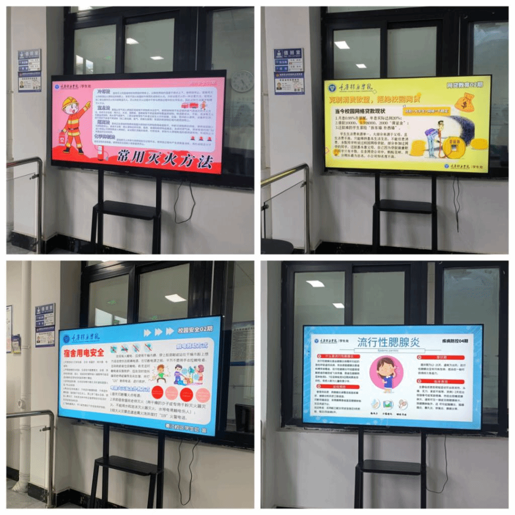 书院公寓楼均安装了智能门禁闸机,同学们可以通过刷脸、刷卡、刷二维码三种方式进出公寓楼栋,精准管理的同时防止外来人员进入,同时宿舍区域实施监控全覆盖,值班老师随时关注楼栋内情况,保障同学们的住宿安全。同学们可以通过“指尖移通”微信小程序录入人脸信息、在线请假、预约书院功能室等,方便快捷;公寓楼安放有电视,为同学们播报重要通知、活动预告、安全提醒等内容。