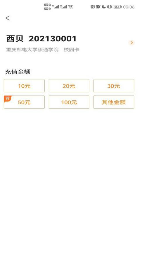 步骤二:输入手机号并填写短信验证码注册登录“完美校园”;选 择学校“重庆移通学院”(原“重庆邮电大学移通学院”),按程序要求注册绑定校园一卡通充值消费信息。【填写姓名、学号和校园卡密码,初始密码为身份证号后六位(密码中的字母“X”默认为“0”)】。