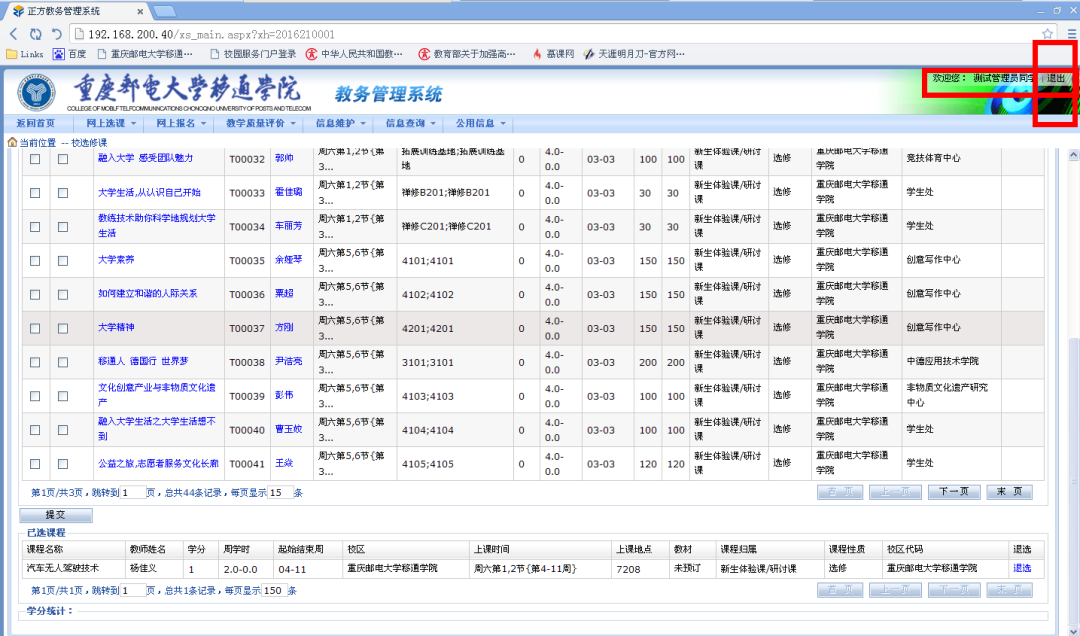 9. 选课操作完成后,如果没有问题,点击右上角的“X”或“退出”即可。
