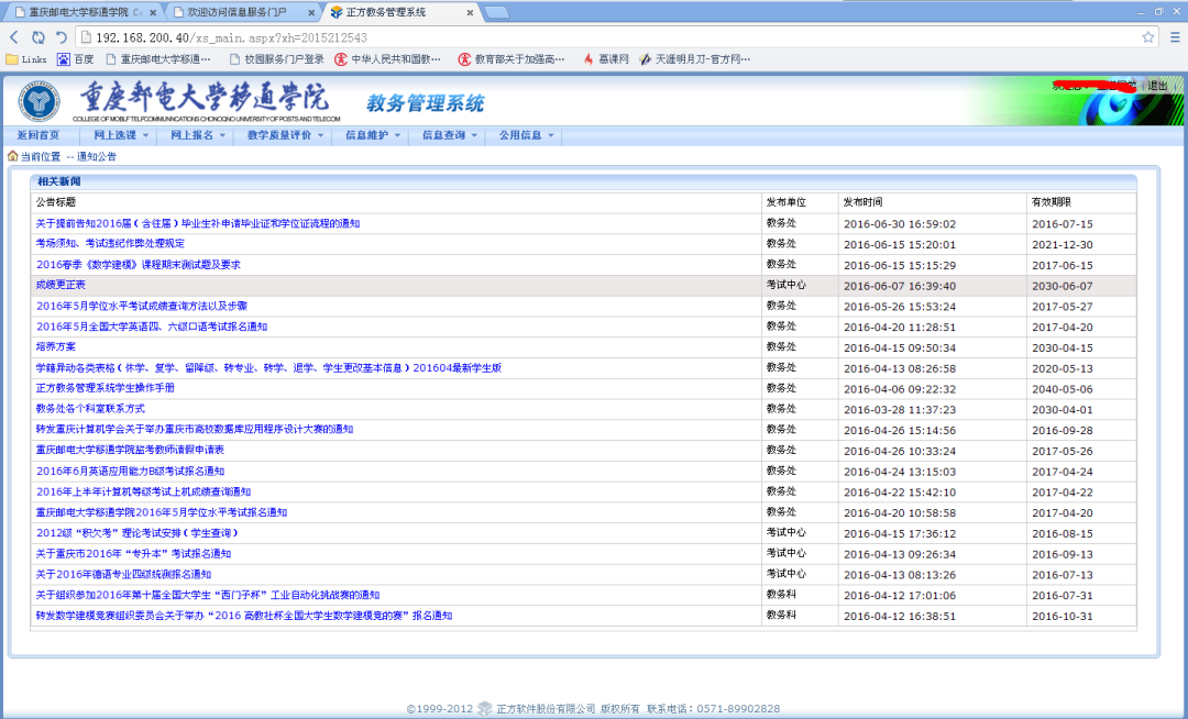3. 进入教务系统的界面。
