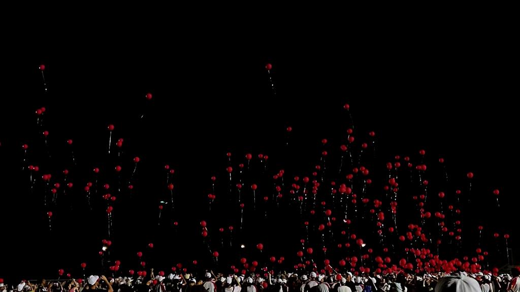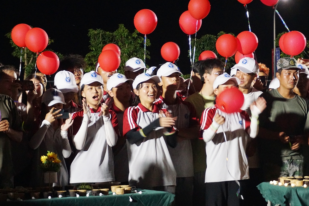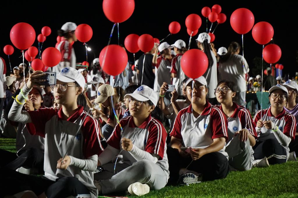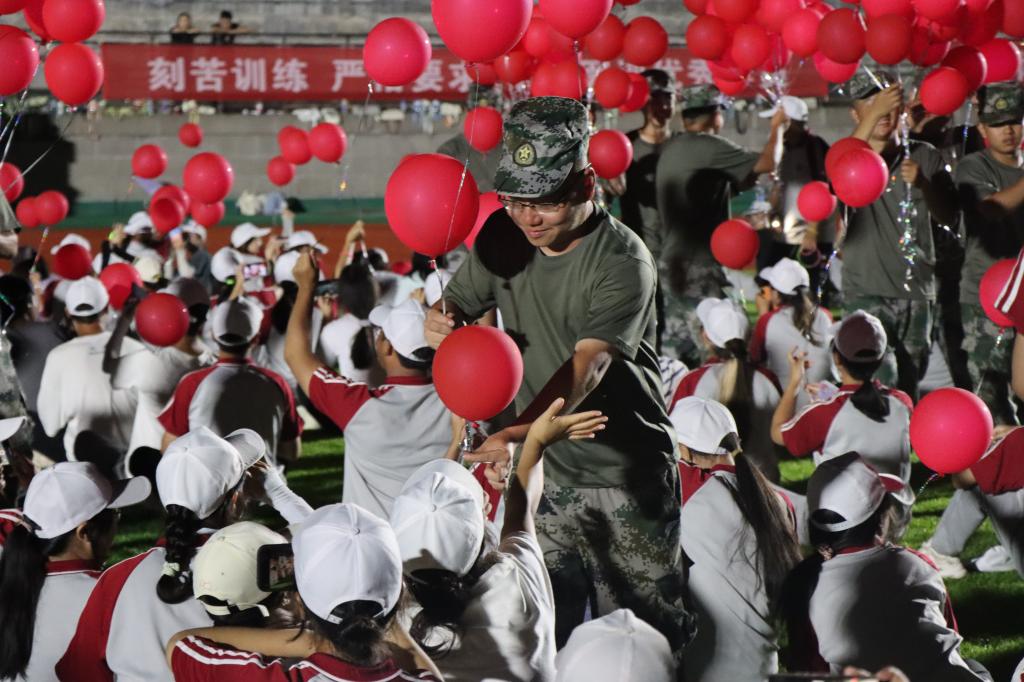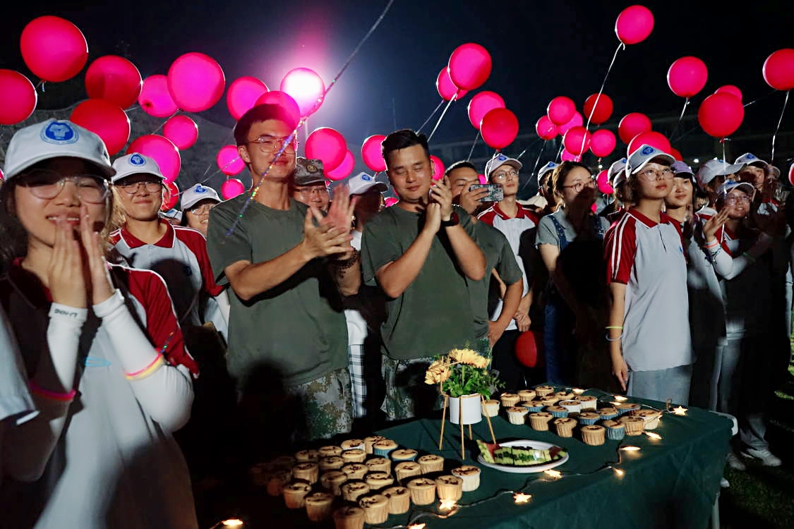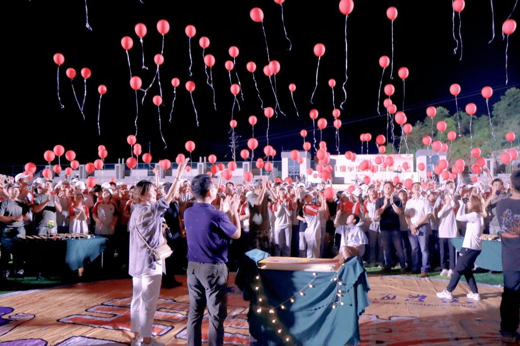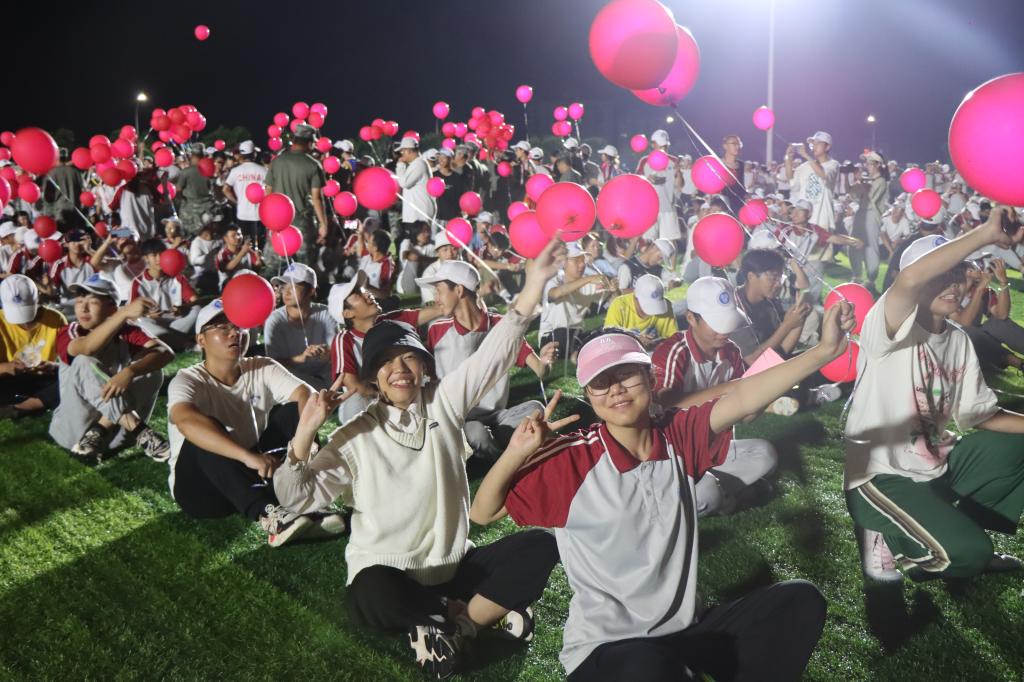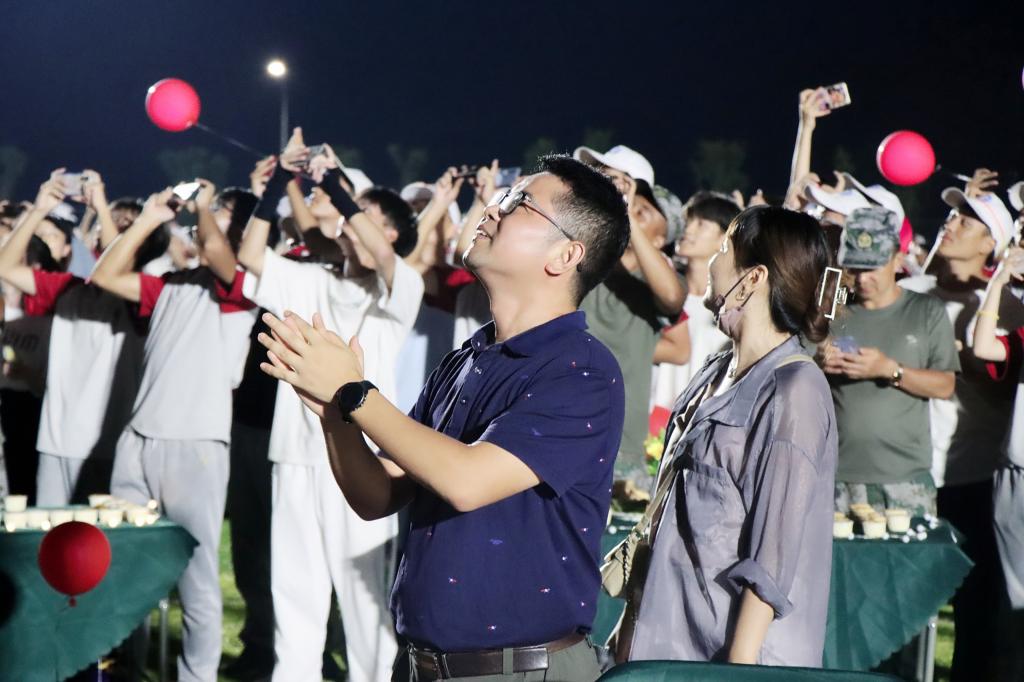 黄鑫团长、常务副校长王永周分别代表学校、教官团为同学和老师们送上最真挚的生日祝福,随后,伴着全场倒计时,全体师生共同见证500余名寿星放飞手中载满心愿与祝福的气球,此刻,璀璨的夜空里漫天繁星,我们的心愿也终将会有回应。