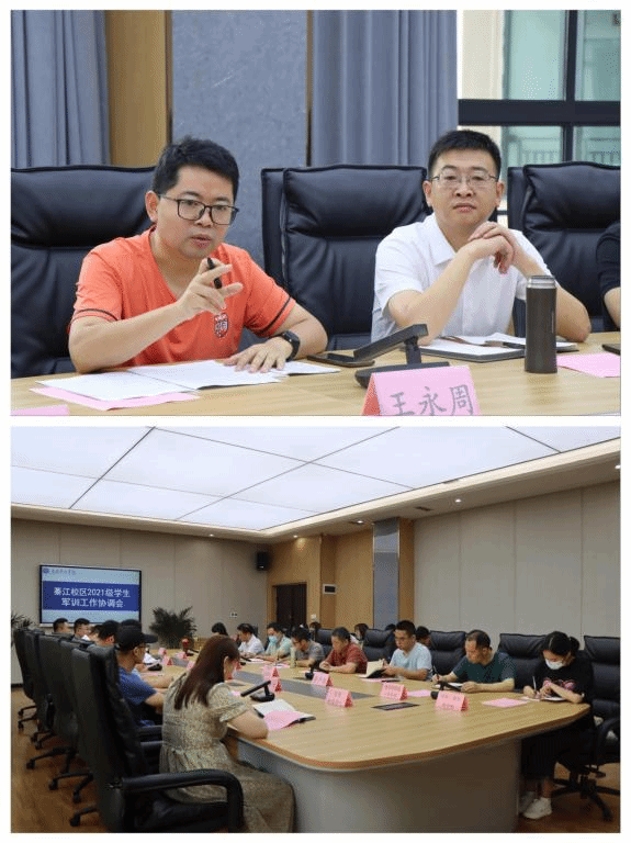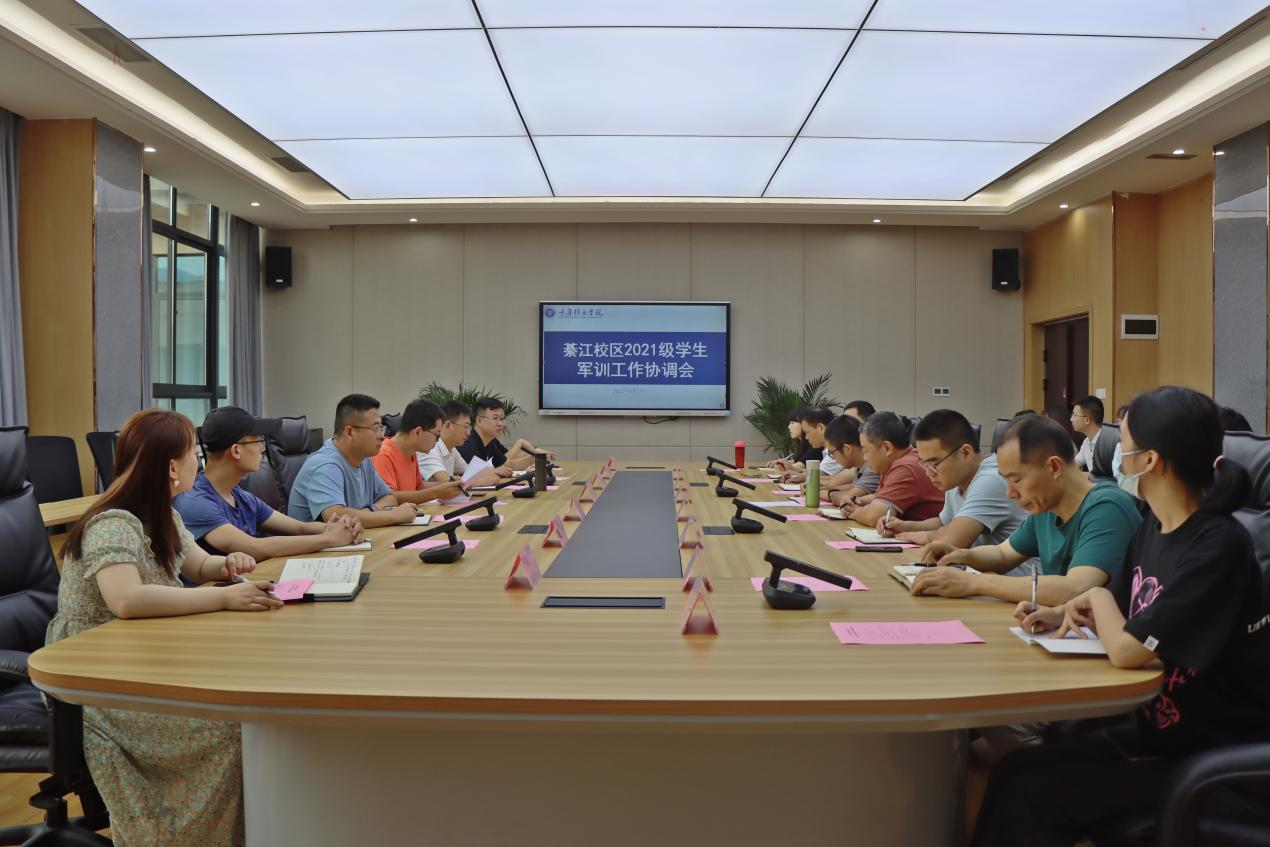 为高效落实军训组织协调、服务保障等各项内容,部署统筹做好军训期间工作分工,确保军训筹备按期有序高质量推进,6月17日,綦江校区召开2021级学生军训工作协调会,会议在图书馆414会议室举行,常务副校长王永周和副校长李文豹出席会议并作工作指示,相关职能部门负责人、各二级学院负责人参会。会议由学生处副处长梁少锋主持。