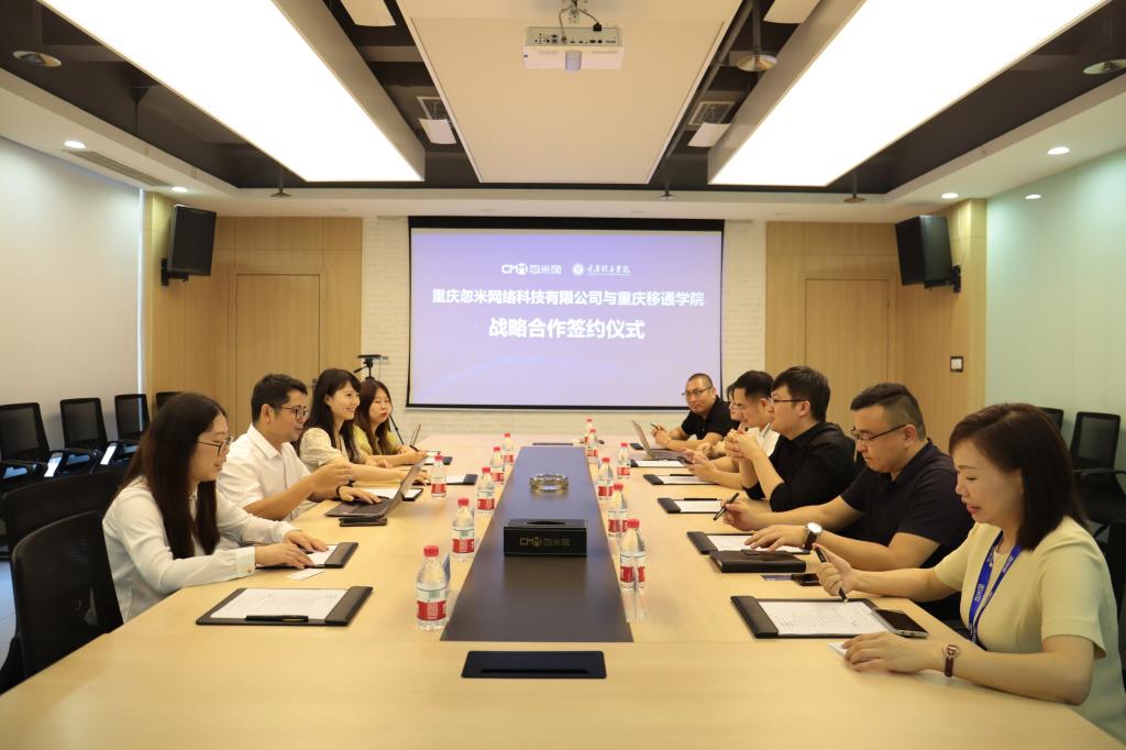 为彰显我校应用型办学特色,加快人才培养模式创新、促进产教深度融合。6月14日,重庆移通学院与重庆綦沄工业互联网有限公司(忽米网)在重庆九龙坡区忽米网总部举行“校企合作”签约授牌仪式。重庆移通学院常务副校长王永周、信息安全学院副院长王宁、骨干教师代表周小艳、郑慧娟,忽米网高级副总裁兼CTO陈虎、忽米綦沄工业互联网有限公司总经理周万里、忽米网教育事业部总经理白云峰、忽米网客户关系部总监杨斯雅、忽米网教育事业部总监吕庆等出席签约仪式。