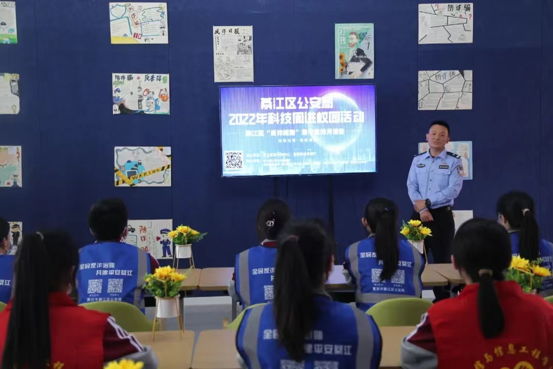 乘着宣传教育基地落成的东风,綦江区公安局以“科技兴警、奋进担当”为主题,开展“2022年科技活动周进校园活动”。巡警支队、刑警支队、国保支队等支队参与其中,向同学们展示科学技术在警务工作中的实际运用。通过主题周活动,同学们更深入了解公安科技创新发展成果,区公安局更进一步推广公安科技信息化应用,推进公安大数据智能化建设,促使科技新成果和科学普及活动更好地服务于广大师生、群众,形成警校合作共赢局面。