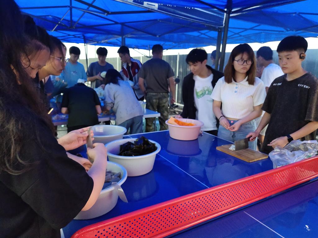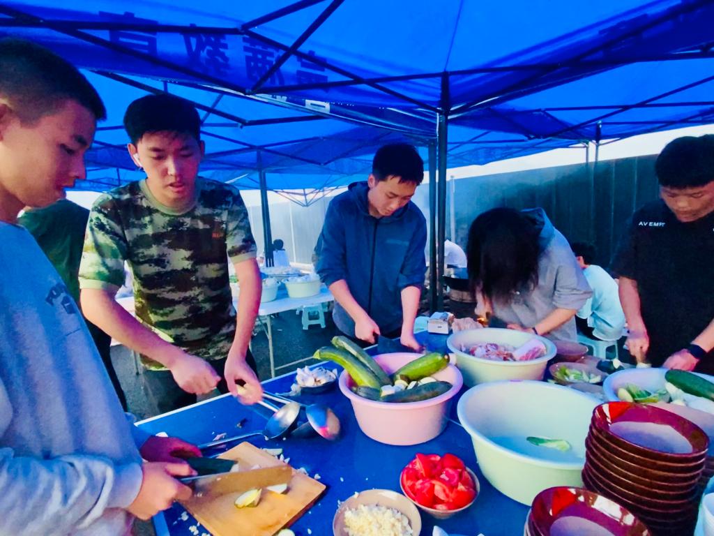 为进一步发挥学校在劳动教育中的主导作用,切实履行好学生劳动教育主体责任,引导学生牢固树立劳动最光荣、劳动最崇高、劳动最伟大、劳动最美丽的观念。下午6点返回学校后,50名学生在田径场断头路开展“劳动最光荣”活动。有的同学负责搭帐篷,冰凉的雨水让人不禁打颤;有的同学负责生火,呛人的浓烟让人睁不开双眼;有的同学负责切菜,数量繁多的菜品让人无从下手;有的同学负责收尾,杂乱无章的环境瞬时井然有序……从搬运木柴、搭建帐篷、架炉生火、清洗食材、洗锅煮菜等步骤全过程、全方位的体验野外生存,我们每一步都在尝试,每一次都在自我革新。