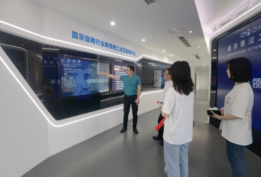 下午14点30分,交流团一行来到位于高新区的重庆綦沄工业联网有限公司,听取了公司总经理周万里对工业互联网和物联网、行业标识解析、数字产业互联网平台、公共大数据安全与隐私保护研究所、先进桌面云综合服务项目的详细介绍,希望高校提供“理论+实践”融合的复合型人才。学校交流团也表示,此行访企拓岗促就业专项行动就是以走出去为契机,多举措、多类别拓展学生就业基地,推动人才培养向数字化转型,向实操型转变,向信息化转接,使得学校人才培养契合企业需。双方还就各自所具有的优势,如何融合行业资源和学校专业资源,建立全方位战略合作等进行了深入交流。