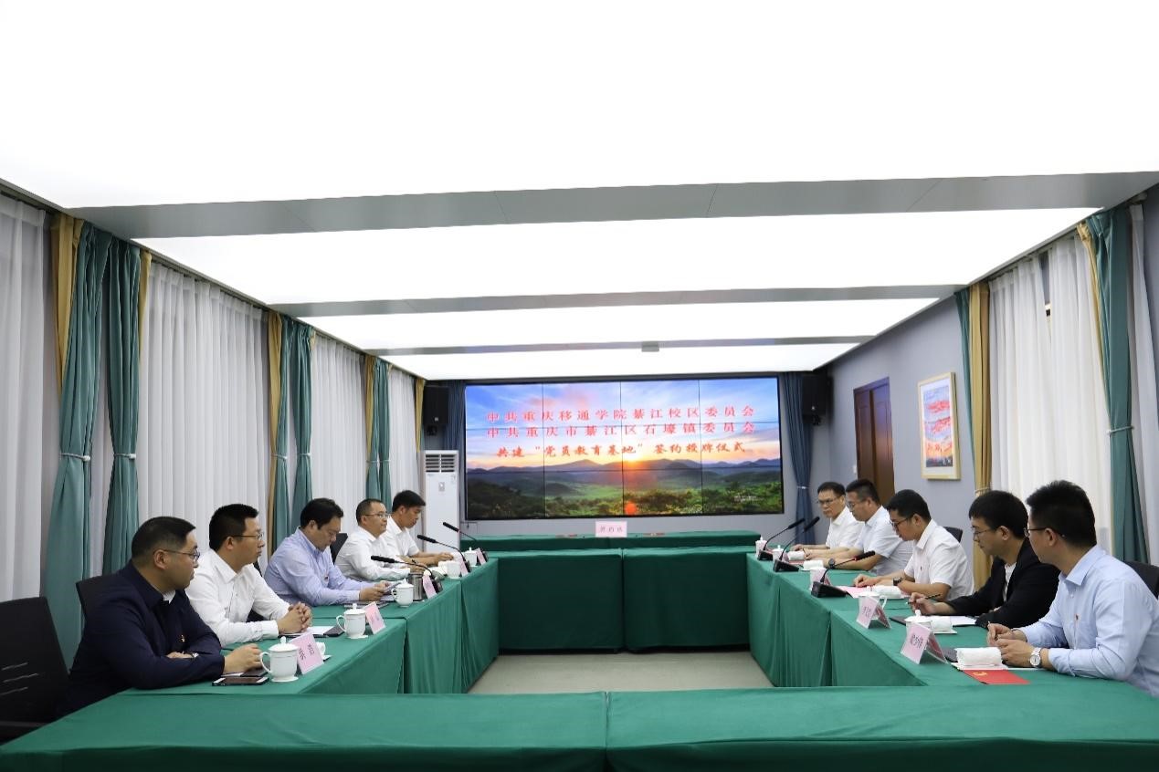 签约仪式上,区人大常委会党组书记、主任母明江致辞。母明江指出,石壕镇见证了革命先辈顽强不屈、不畏艰难、敢于担当、勇往直前的奋斗历程,是具有历史和现实价值的革命史、斗争史和光荣史。他强调,重庆移通学院和石壕镇联手打造党员教育基地意义重大,能够实现共建、共享、共赢目标,功在当代,利在千秋。