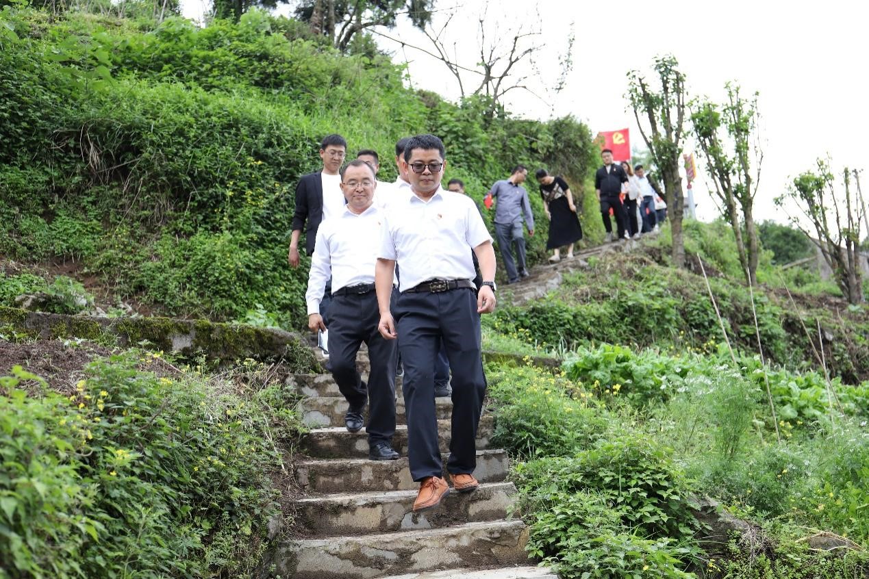 签约仪式后,区、镇领导与重庆移通学院的同志们一道,参观了红一军团司令部旧址,了解长征中的綦江故事。从邱石坝大田红军长征宿营遗址群出发,徒步到达田坝支部活动室,重走红军长征路,体验长征情。