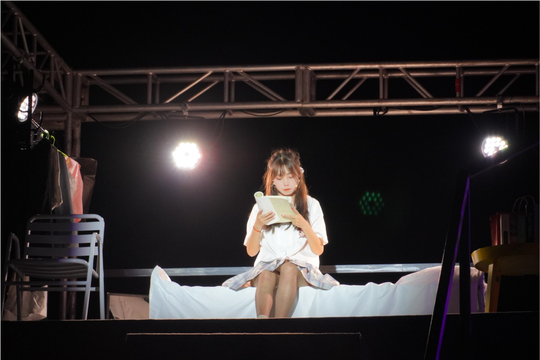 开幕大戏《隔壁》女主角付之裕告诉我们,戏剧从大一的寒假已经开始准备了,但大家都是第一次做,很不熟练,确实遇到了不少的麻烦和困难,但经过九十多天不懈的努力加紧排练,每个人都进步了不少,都很棒。最重要的是今天现场的效果,我认为很不错。当我们第一次正式登上舞台开始表演的时候,我感到很紧张,其他几位演员也都是,但当灯光打到我们脸上时,感觉瞬间就不一样了。特别要感谢幕后的同学,大家相互支持,给予了许多帮助,也感谢所有的工作人员,感谢大家!