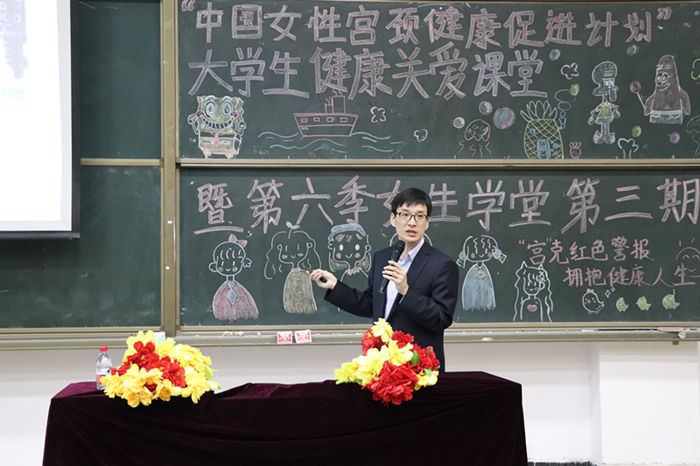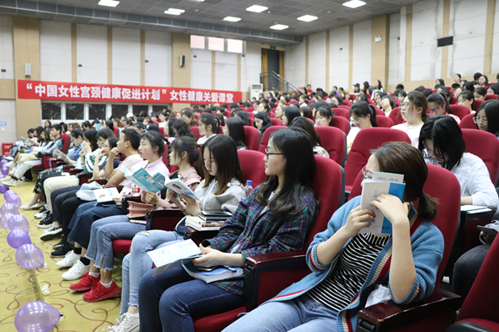 (图为2019年4月我校承办的中国女性宫颈健康促进计划女大学生健康关爱课堂暨我校女生学堂第三讲图片)