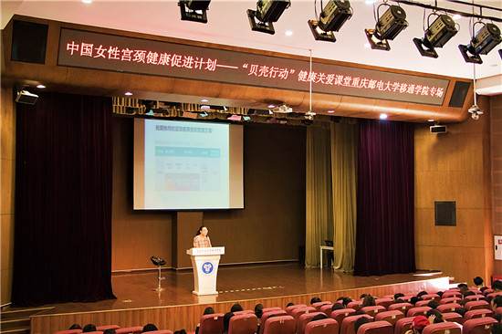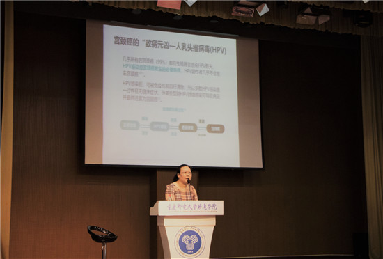 (图为2019年12月我校承办的“中国女性宫颈健康促进计划”女大学生健康关爱课堂专题讲座图片)