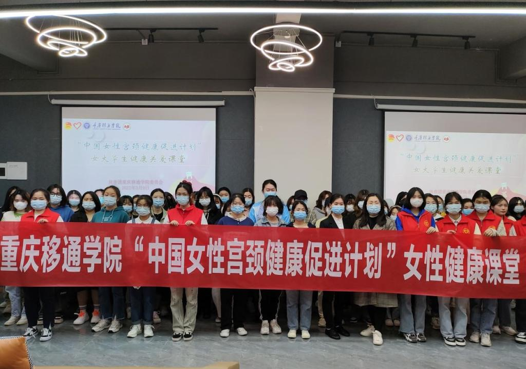 (图为2022年3月我校承办的“中国女性宫颈健康促进计划”女大学生健康关爱课堂活动图片)