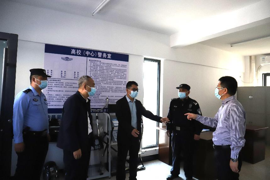 姜天波书记一行走访查看了我校警务室、医务室等场所,深入了解我校治安管理工作和高校中心警务室建设工作。保卫处副处长谈胜围绕“队伍建设、日常管理、硬件配套”等方面汇报了当前我校治安管理工作。汇报现场,姜书记亲自检验、试戴防暴装备,了解队伍技能培训情况,强调校园安全重要性,管理要具有风险意识,要做到万无一失,确保学校师生员工人身财产安全。