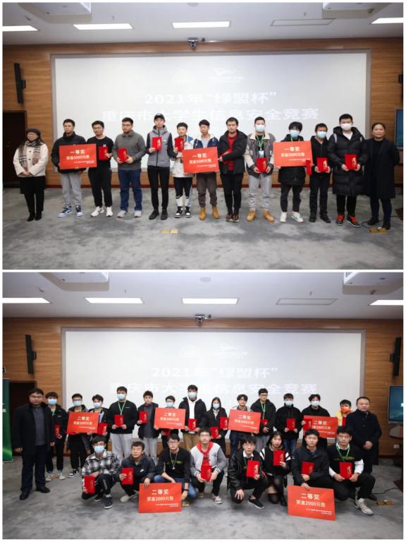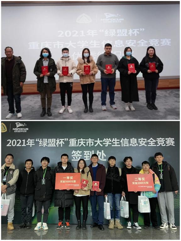 2021 年“绿盟杯”重庆市大学生信息安全竞赛旨在发挥网络安全防护对信息化发展的保障作用,增强高校学生网络安全技能和团队协作能力,并创新网络安全人才的培养机制,培养、选拔、推荐优秀网络安全人才,加强网络安全人才队伍建设。该赛事启动于10月份,共有电子科技大学、广州大学、郑州大学、西藏大学、江苏科技大学、成都理工大学、成都信息工程大学、江西警察学院、四川师范大学、江西师范大学、西南大学、重庆大学、西南大学、重庆邮电大学、重庆工商大学、重庆理工大学、重庆移通学院等30所高校,共计259支队伍1000余人报名参赛。经过预选赛的激烈角逐,我校两支队伍成功晋级线下决赛。