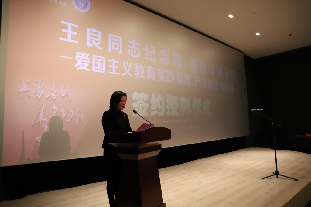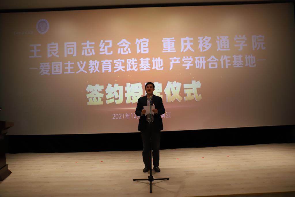 12月3日下午,我校与王良同志纪念馆举行了爱国主义实践教育基地、产学研合作基地签约授牌仪式。仪式在永城镇王良同志纪念馆举行,我校党委书记、督导专员苏开荣,常务副校长、綦江校区党委书记王永周,党委委员、组织宣传部部长苏述庚,思政教学部主任邓燕,与綦江区委常委、一级巡视员朱川,区常委、宣传部部长任骏,区委宣传部副部长、区融媒体中心主任孙萍,区教委副主任左祥国,永城镇镇长郑国波等领导同志出席签约仪式。我校公共基础教学部思政组全体老师、移通学生代表等39人参加签约仪式,仪式由孙萍主持。