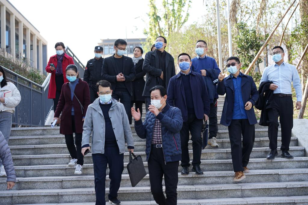 民教处副处长戴戈一行实地考察了解綦河书院、实训中心、应急指挥中心天眼系统、教学楼、東溪食堂、图书馆,并在考察过程中深入各区域,与学校教职工进行亲切交谈。在陪同考察过程中,张德民校长就学校地理位置、校区规划、师生规模等情况向调研组一行做详细介绍。