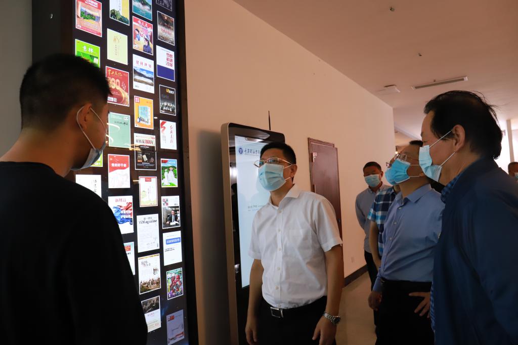 校长张德民教授对姜天波书记一行表示热烈欢迎。在陪同参观调研过程中,张校长全面汇报了綦江校区的工作开展情况。张校长讲到,在开学期间,学校做了最充足的准备工作。从思想政治教育上按照培养方案开齐并开好思政课,抓好思政教育的主阵地;配备全生异科导师,开展学生个性化思政工作,重点以辅助开展学生生涯规划和学习规划为切入点;抓住书院平台,结合学生生活和书院教育开展思政教育;以丰富的团组织和学生社团活动为入口,以学生喜闻乐见的形式广泛开展思想政治教育工作。从开学主要工作上,抓好疫情防控工作,按照教育部、市和区最新文件要求,缜密开展健康码、核酸检测结果查验工作。通过学工系统,建立校区师生健康状况报告机制,开展疫情防控应急演练,有序有力保障校区师生健康;做好新生入学教育,上好“一所与众不同的大学”新生体验课;认真组织,加强备课,上好教学第一课;完善校区组织管理,努力做好学生生活保障;抓好生活在书院、专业在学院二条线,以学生全方面发展为中心,全方位开展校区相关工作。