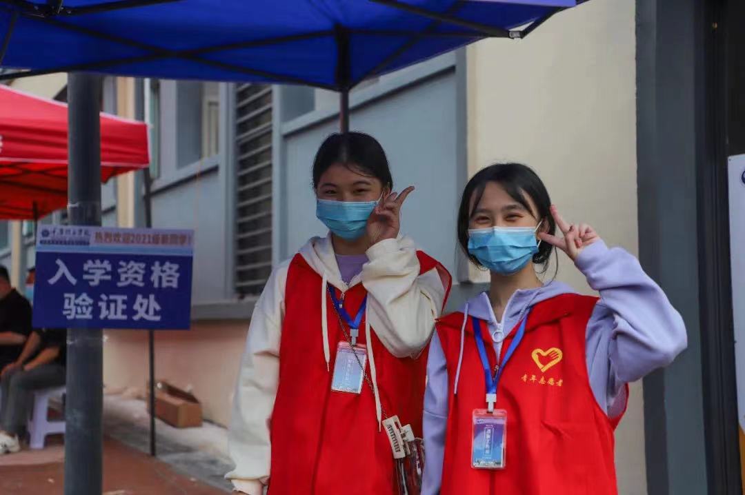 来到校门,通过测体温,出示健康码、验证身份等环节进入校园,门口设置的志愿者服务点,贴心摆放了口罩、雨衣、消毒液、纸巾等物品。继续往前,这是第一次亲眼看到校园风光,一定眼前一亮吧,这就是未来要学习生活的地方,很新奇、很期待、很开心、很想笑。