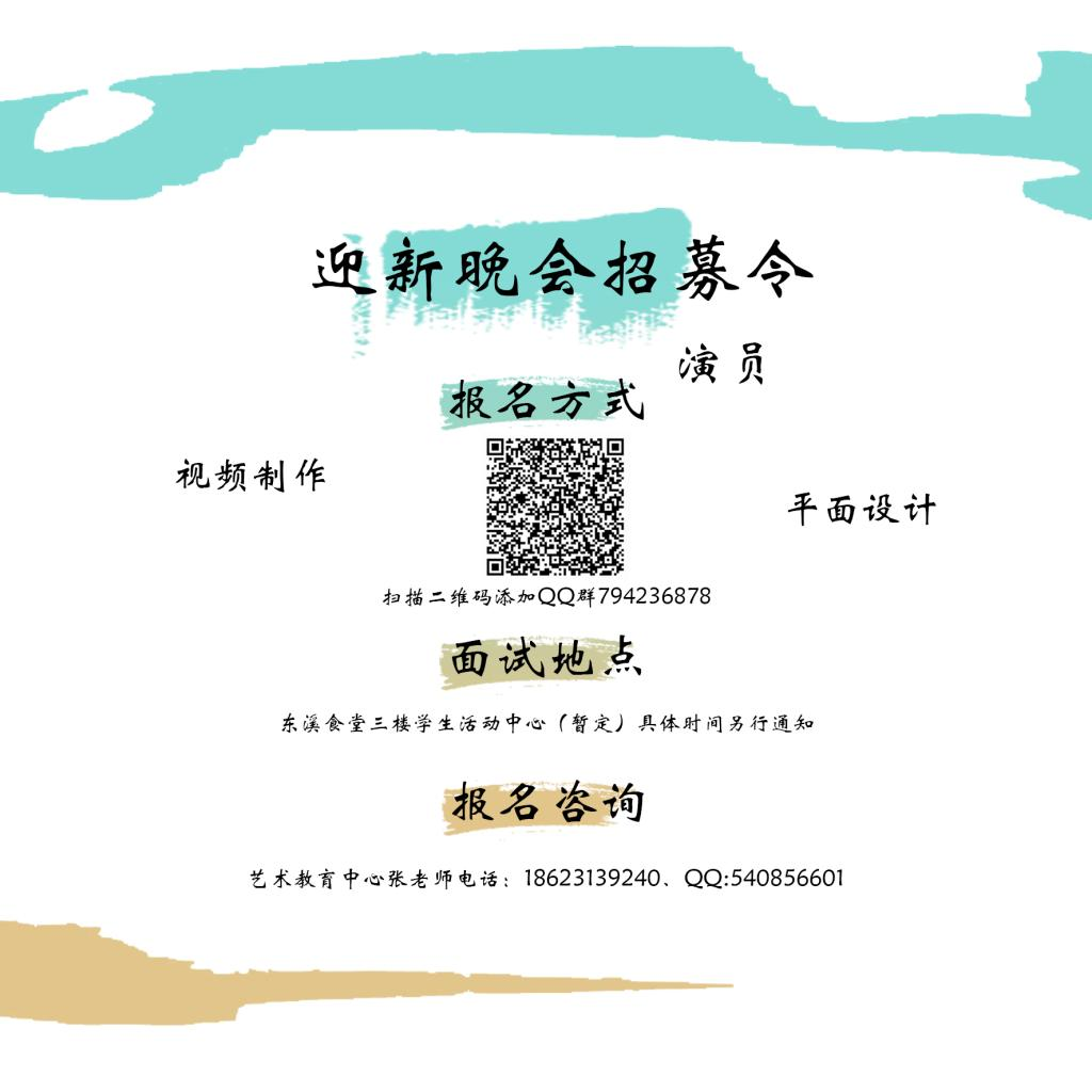 现面向綦江校区招募迎新晚会演员、平面设计、视频制作人员若干,欢迎同学们积极参与,踊跃报名!