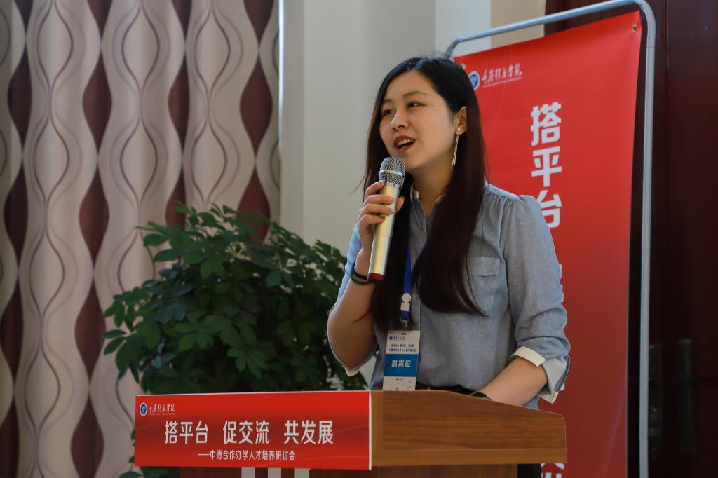 武汉城市职业学院国际教育学院外事专员周璇提出,学校要紧紧围绕国家发展战略,将国际交流与合作作为学校优先发展战略;同时,也需搭建平台,开展多渠道、多形式、多层次的国际交流与合作。她表示,希望通过此次研讨会加深并推动中德更深层次的教育合作。