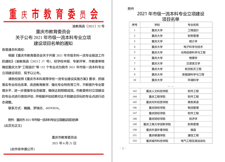 近日,市教委公布了2021年市级一流本科专业立项建设项目名单,我校通信工程专业获批。