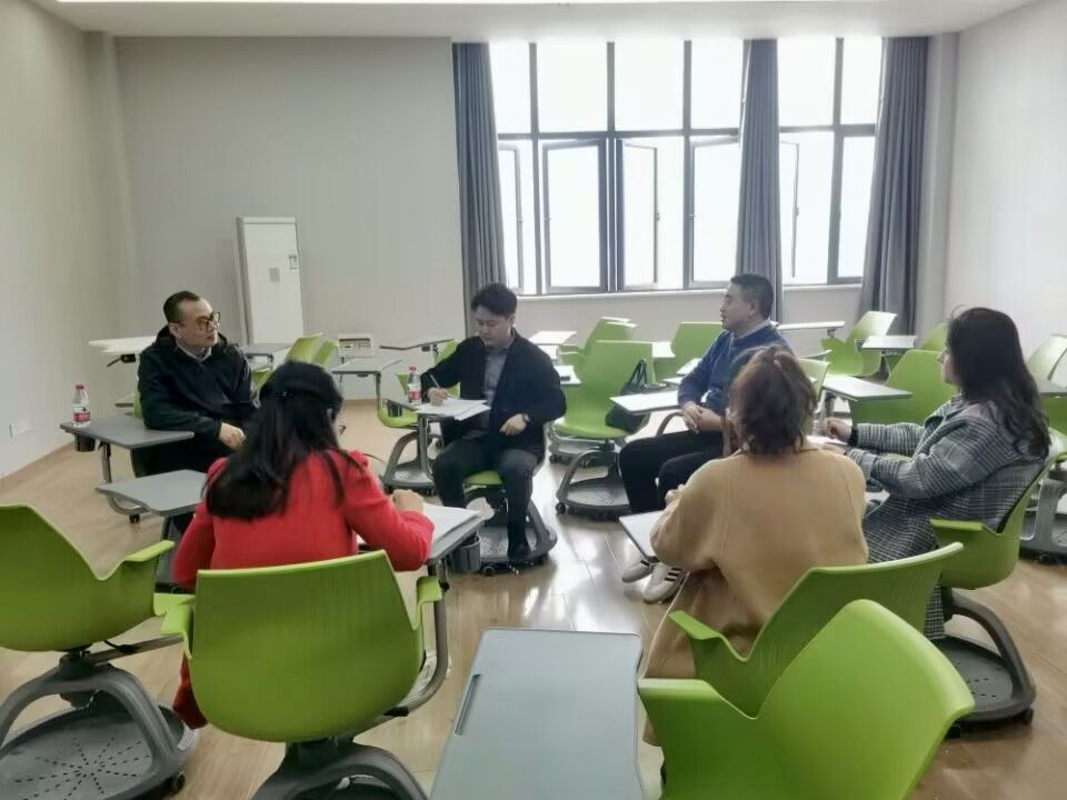 2023年3月29日星期三下午,数字经济与信息管理学院数字经济教研室与新道科技股份有限公司在綦河书院智慧教室开展“畅谈数字经济,共谋专业发展”校企交流活动。新道科技股份有限公司石立恒总监和印灿经理,数字经济教研室綦江校区全体专任教师参会,会议由数字经济教研室主任陈明燕老师主持。