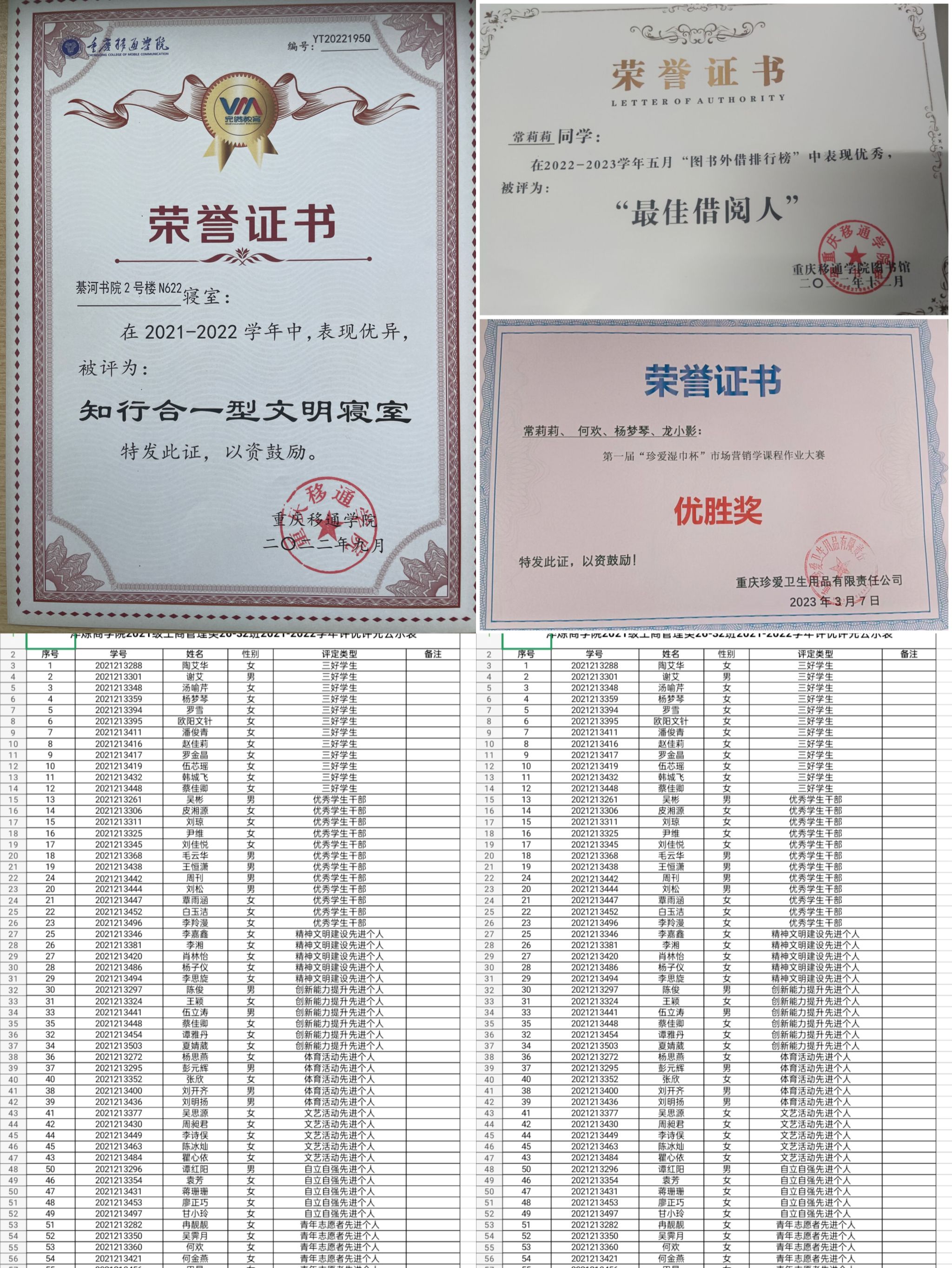 以学风建设、文明宿舍建设为龙头,校园文化活动为载体,以大学生素质拓展计划为依托,始终践行乐学、乐教、创造、创业的校训,做到承前启后、锐意创新,求真务实、开阔进取,团结全体寝室成员,为创造美好明天而努力奋斗!在2022年—2023年里,N622全体寝室成员高度团结,携手奋进,脚踏实地,拼搏进取,学习、生活双丰收。在良好的学习氛围下,总结学习经历,全体成员做到上课无迟到、旷课、请假等情况,小组作业积极完成,无拖拉、消极等现象,期末考试全部上岸,无一人挂科,并且都以优异的成绩完成对课程的学习。N622寝室成员在大二上学年获得“知行合一”文明寝室的称号,有两名同学已成功入选入党积极分子,争取在党的引领下成为更好的人,在其他的方面上也有她们努力的身影,成员曾获自立自强先进个人、体育先进个人、最佳借阅人、在第一届“珍爱湿巾杯”市场营销学课程作业大赛中获得优胜奖。