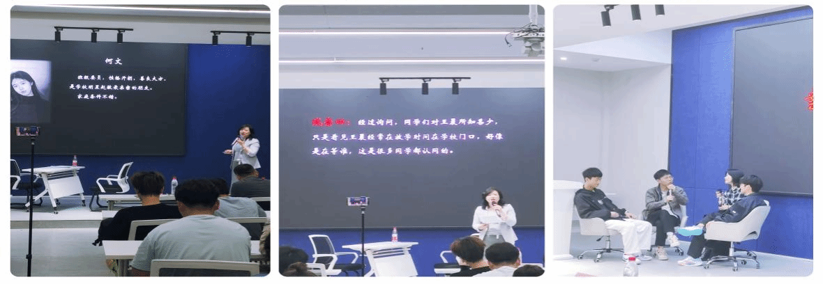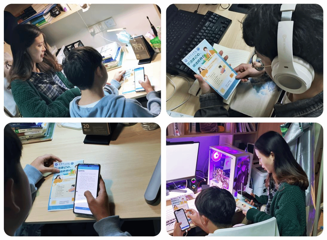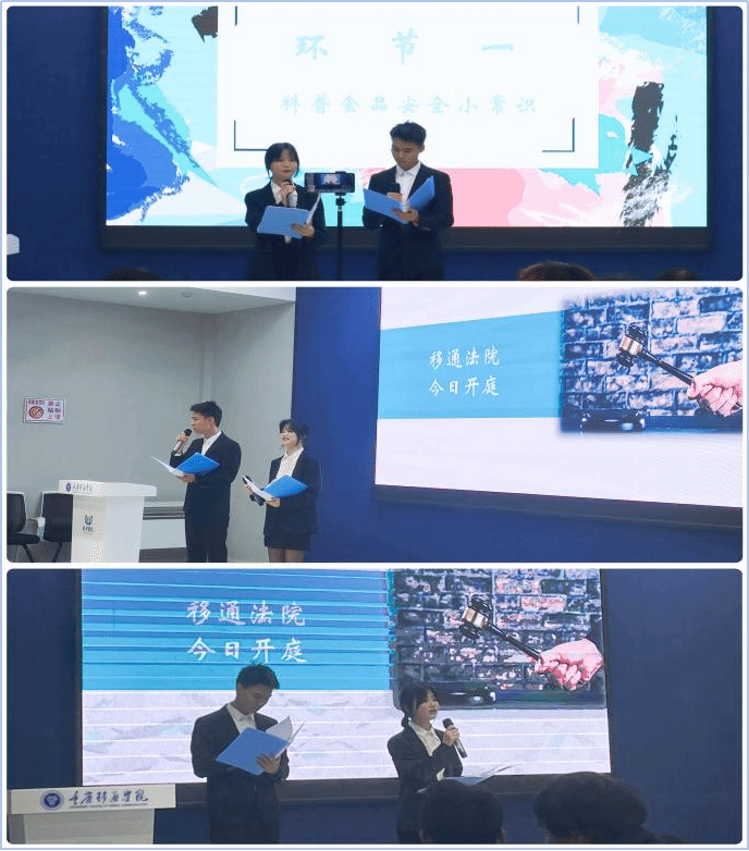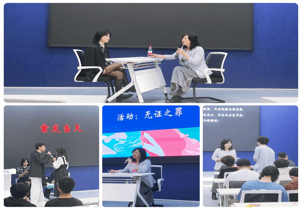 萧婷婷老师演绎了正义的警官,郑欣雨、袁锡、余金燚、杨子豪、王力鹏等同学再现了网暴、霸凌情景。他们以精彩的表演快速地把同学们带入到整个故事中。故事包含了校园欺凌、网络暴力、抑郁症、语言暴力等,通过推理,查明了整个事实。现场的同学们也在此环节中对法律法规心生敬畏,思考故事中的对与错。“查明真相”环节用创新的方式再次加固了同学们第一颗“法治扣子”。作为大学生更要身体力行,以日常生活为课堂,在潜移默化中明辨是非善恶,在心中种下法治的种子。